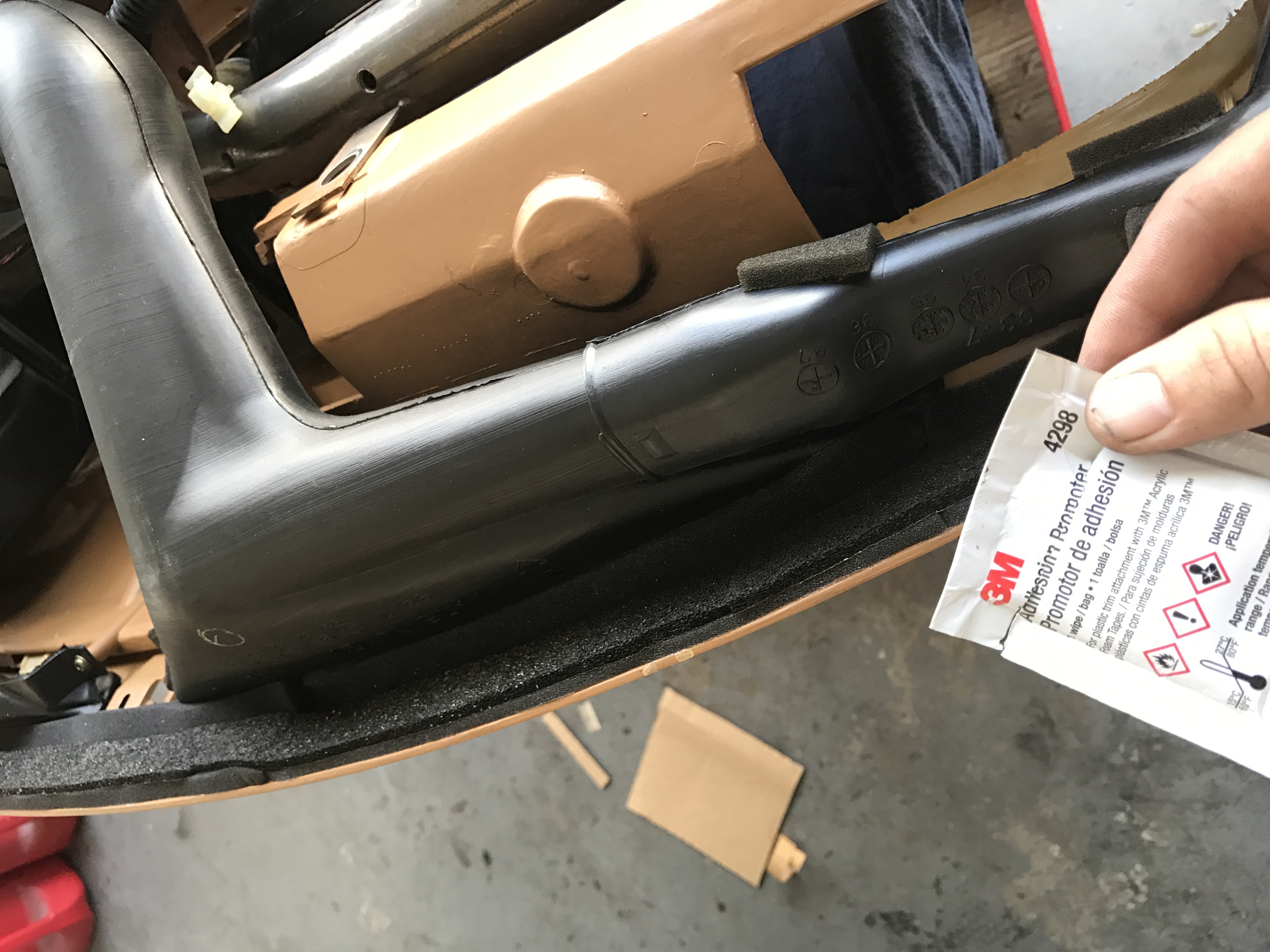 Today I installed my dash back into the car , applied foam to body contact areas to help with dash raddle. The process is pretty simple, once dash is out clean off old adhesive foam strips, clean plastic surface, use adhesion promoter, apply new stick back foam, install dash.