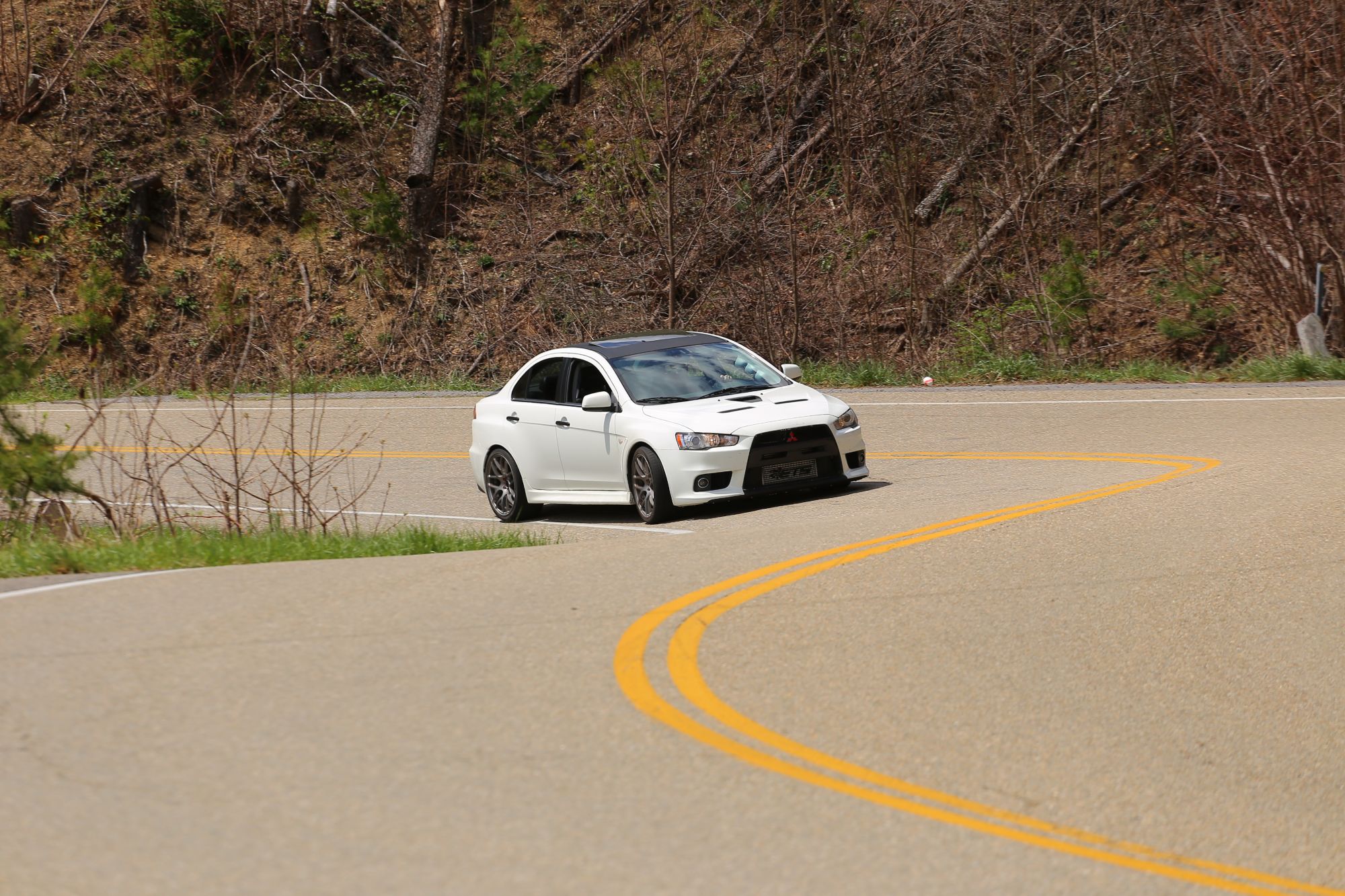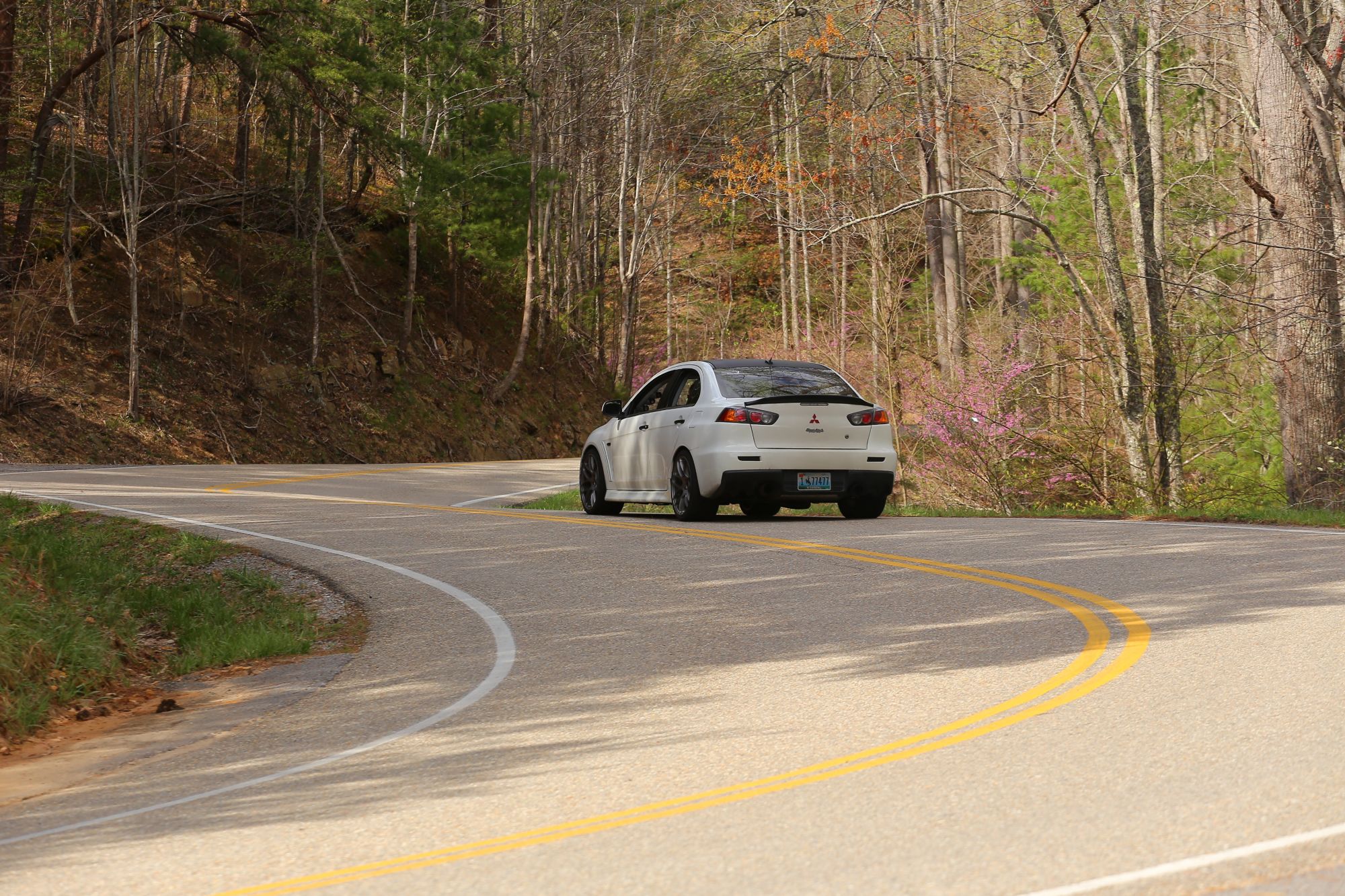 I had just made my first trip there in april of this year in my Evo. While it was definitely fun in my Evo (I'm also pretty sure I was the loudest thing there that day... haha), I wishes I would of had my Miata as well, that road would be epic in a Miata. It would definitely cater more to the momentum style driving of a Miata vs the burst acceleration and top end of my Evo. I highly suggest making a trip up there, maybe even make it a weekend trip, it's definitely worth it, and would be even more epic in the fall when everything is changing colors, and not quite as hot. Fair warning, it is a public highway and as such, most runs you will make you will encounter normal traffic such as minivans who don't realize they can go faster than 5 mph, the bro-truck that is meant for mall crawling, the motorcyclists whose bikes are in their lane, but their head is 1.5-2 feet in your lane, etc etc. But when you get a few miles of the 11 miles just to yourself, it is magical. Plus Killboy is amazing at getting pictures, google him, and I'll post a few from when I was there to give you an idea. Definitely worth the $6 a picture. Also, in these pictures I am doing anywhere from 30-60 mph, and they are still that clear, on his website he actually has a few of a Miata behind me on my first trip down the dragon... lol...