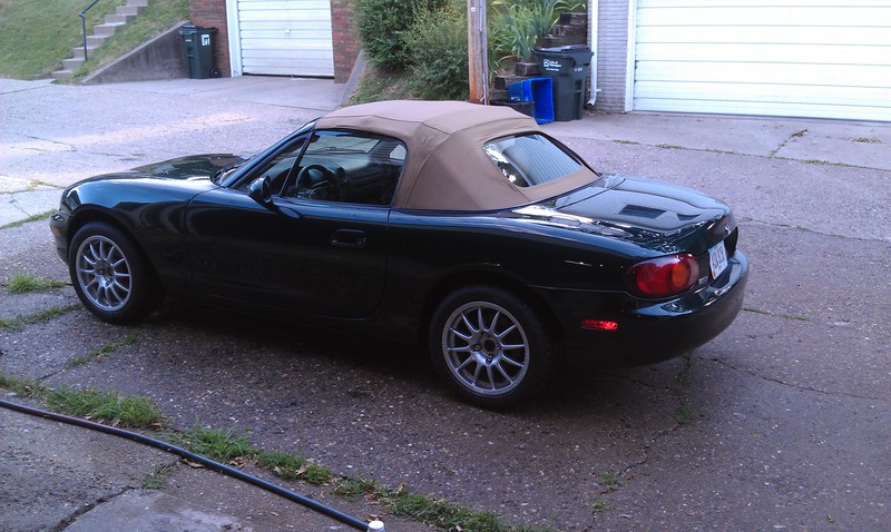 The NB I bought seemed to be very well taken care of, but was starting to rust pretty badly and needed some maintenance items taken care of (still does). I started with brake pads and rotors, transmission fluid, shifter boots, fuel filter, clutch master and slave w/ stainless line, and gorilla taping the top.