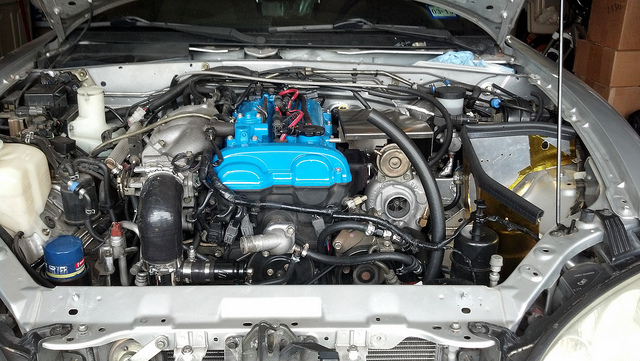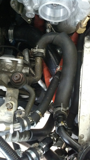 Let's see; compressor outlet hose, lower rad hose, turbo coolant lines, AC and PS. Hmmm, what else can I stuff in there? This is what makes me want to kill people.