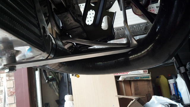 Some crappy brackets I made to secure the IC to the rad. You know, for when the rad is actually there and not out getting fixed: