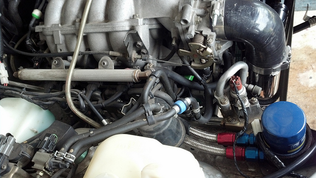 After fixing the mess of oil leaks (filter relocation adapater not even hand tight, oil feed T-fitting not even hand tight, etc), I finally got around to installing the new parts.