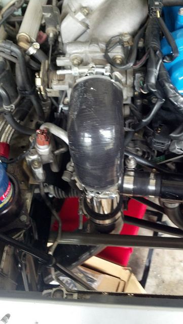 ****!!! Nothing seemed to want to fit without being modified! Wrench clearance on the exh manifold is non-existant, FM's shroud wouldn't fit their own rad without clearancing a few areas. Trying to bolt/un-bolt the DP to the turbo outlet is a huge pain (just rotate the flange 45 deg...argh!). And, finally, the lower rad hose, compressor outlet hose, AC lines and turbo coolant lines all try to occupy the same point in space at the same point in time!