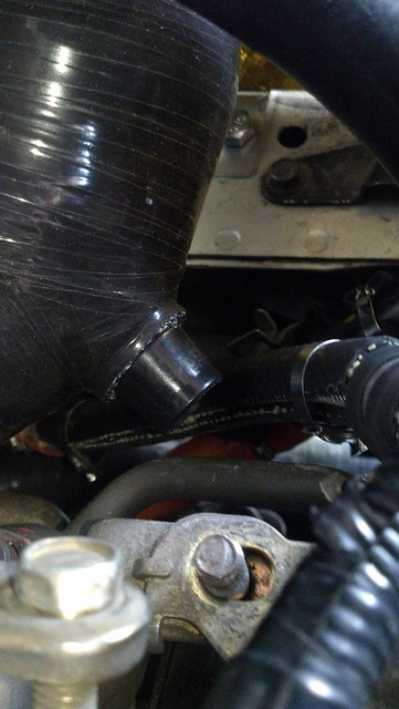 The BPV bung on the intake hose is pointed right at the AC line bracket. F'n great!