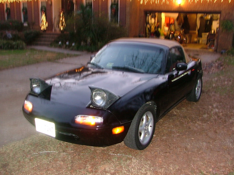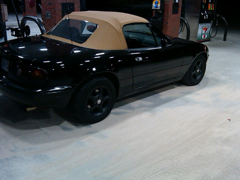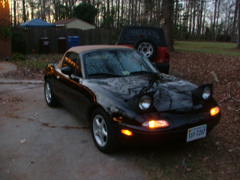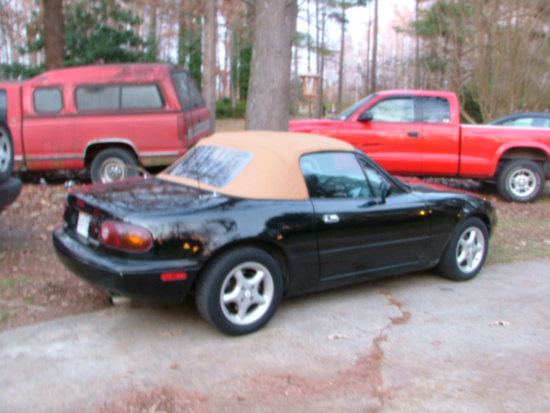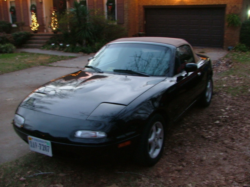 My car.... I have always been into Miatas, even though everyone around me considers them chic cars. But never stopped me. I just bought my first miata a few weeks ago after finally selling my oz lancer. I got a 1994 miata. black with tan top, 5 speed of course. it has 127xxx miles. So far I love it.