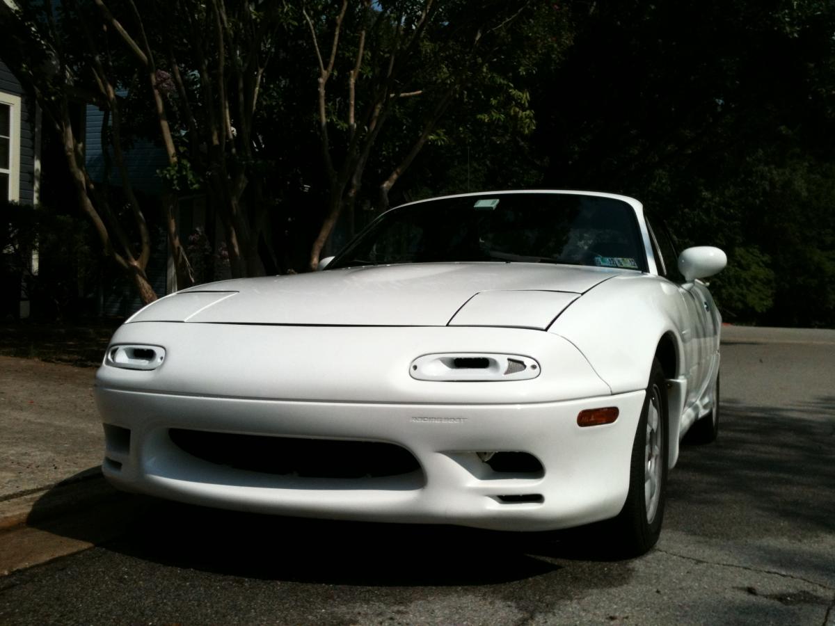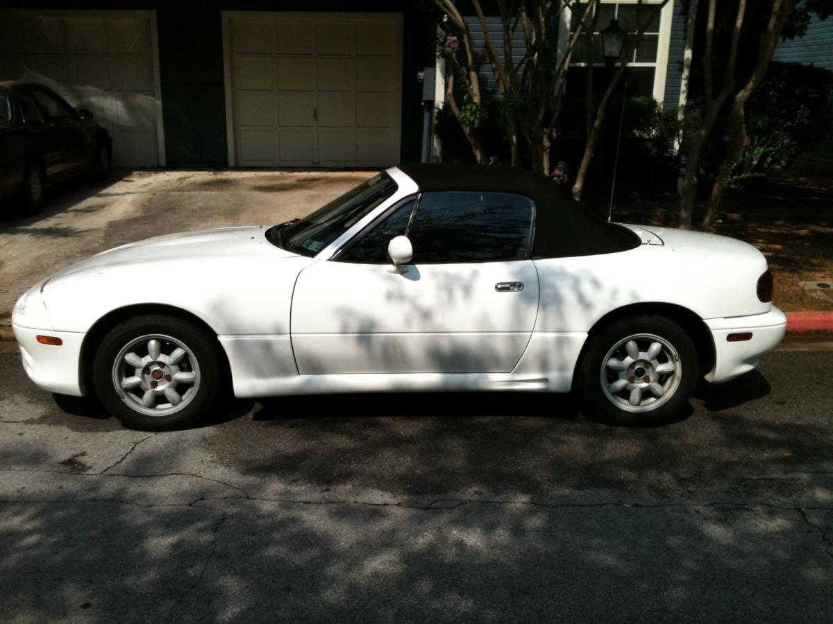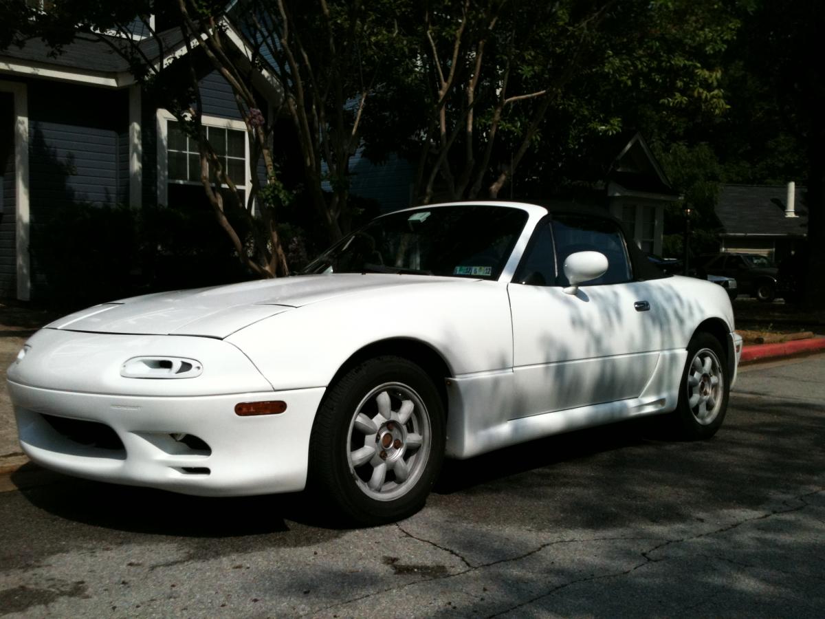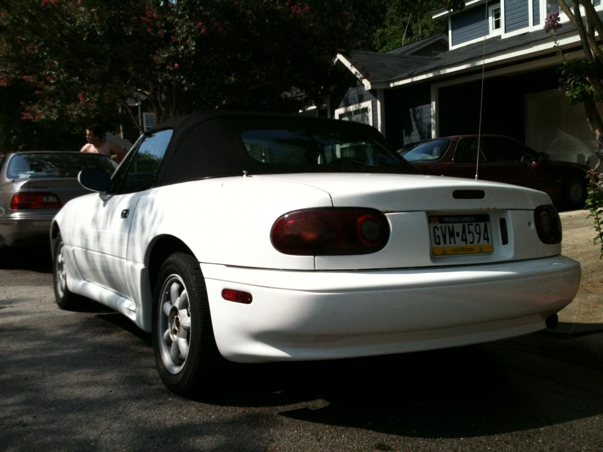 Hey everybody, I've been a long time lurker soaking all the great info on here. I have a stock white 1990 miata. I got it for free from my Aunt on my 16th birthday (I'm lucky I know). I orginally thought it was a car for gay hairdressers haah but I kept it and it has really grown on me. I totally love it now. It is my DD and I just did my first autocross with it last weekend. It has about 93,000 miles on it.