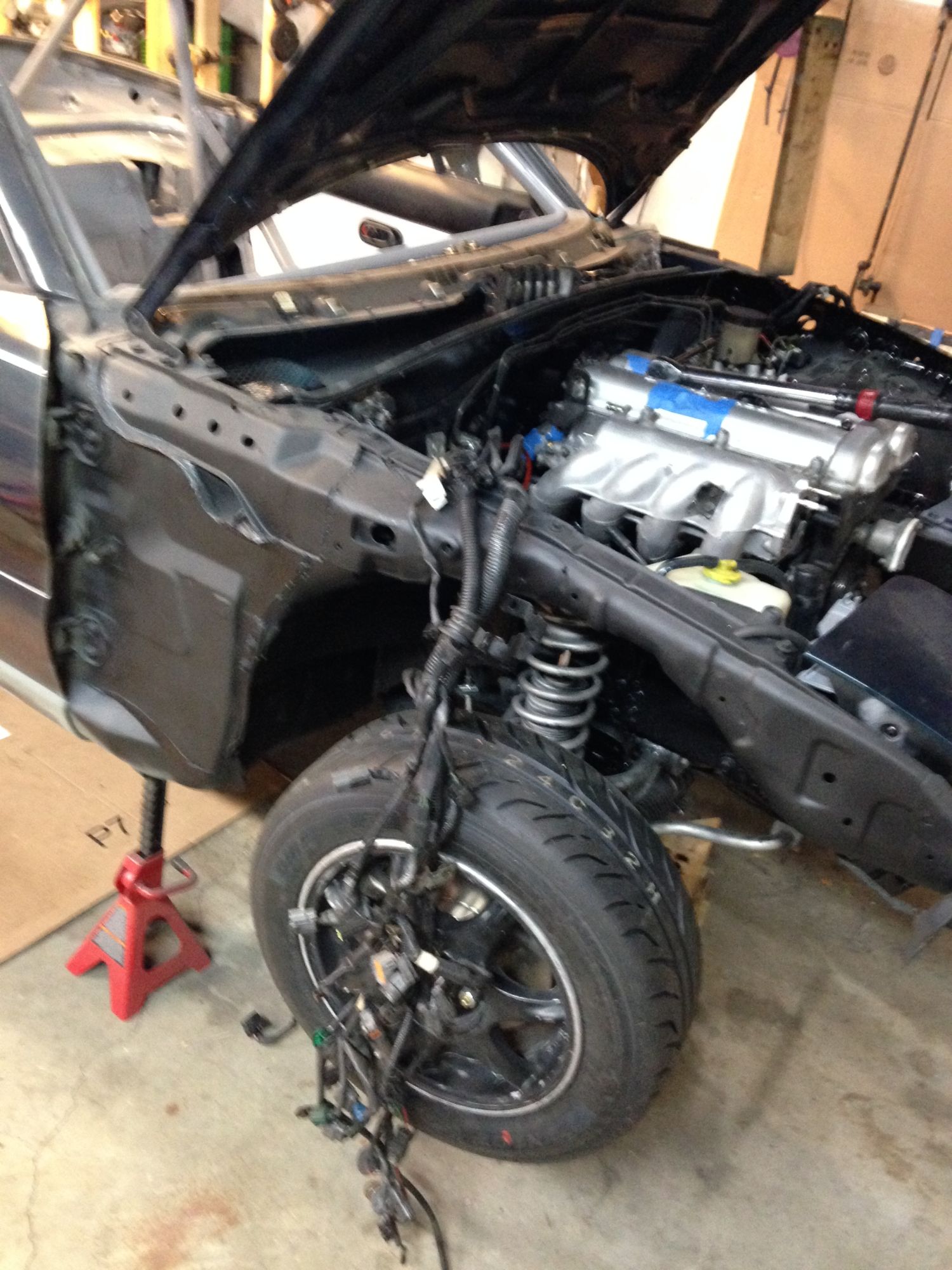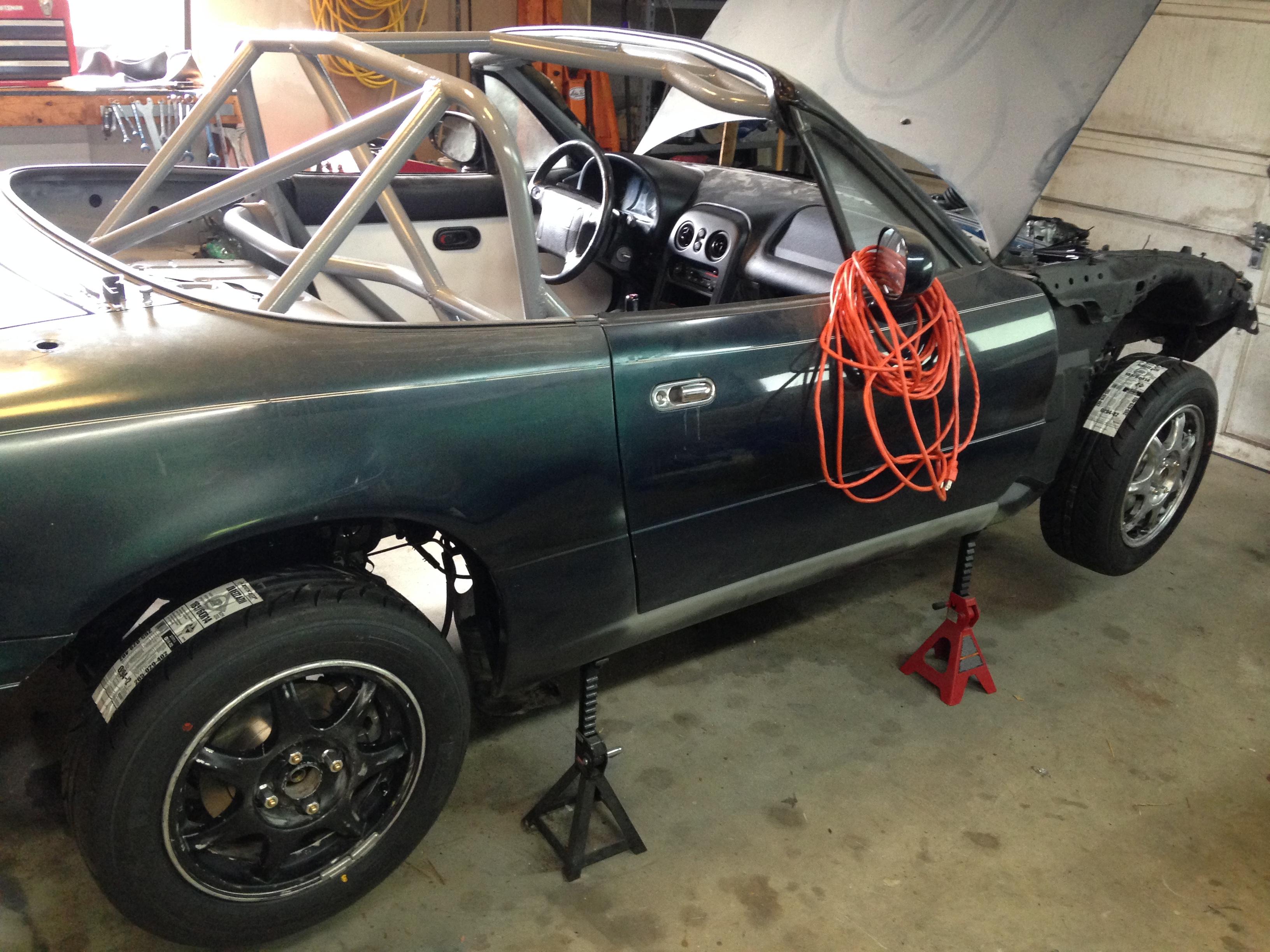 Only mods are full cage, seam weld, weight reduction (cut it all off!) and MazdaSpeed shocks/springs. I rebuilt the engine, but I think that only gets me back to stock power on a 144,000 mile engine. It has been a hell of a learning experience. If I can get it by an MD inspection, I'll be on the road!