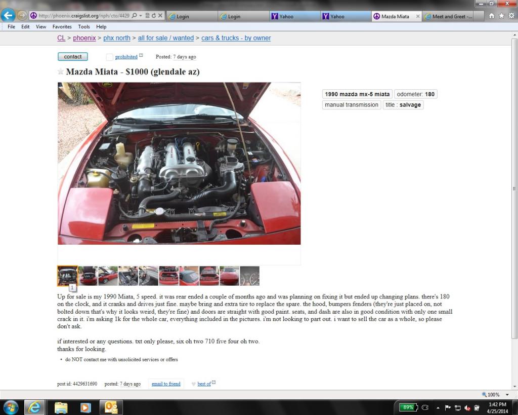 You got took... but you already know so I won't rub it in (much)... This is what $1000 worth of Miata looks like in Phoenix