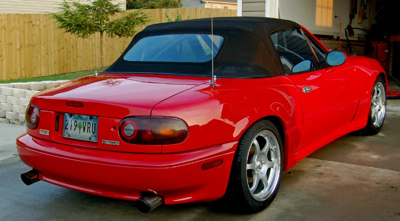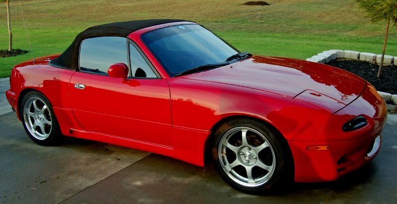 Just thought I would say hello and introduce my project 90 Miata. Bought from a friend who just did not have the time to finish the car. Hell, I may not have time to finish the car! Anyway, car still has the 1.6L with +2mm J&E pistons, aluminum flywheel, greddy turbo, FM intercooler, FM body kit, SSR wheels, and a page full of other mods & accessories. I have a box on my work bench with a MSPnP and a bunch of other goodies to install. I am sure I will be requesting some help from the pro's when I start the efi upgrade. Running pretty good even with the crude fuel enrichment...Rrpr, 1.8 red injectors, 2 fuel pumps and insane fuel pressure. MTX-L showing 11.5:1 at 10lbs boost so mixture still looks safe but this is probably close the limit with this setup. here are a couple of pics:
