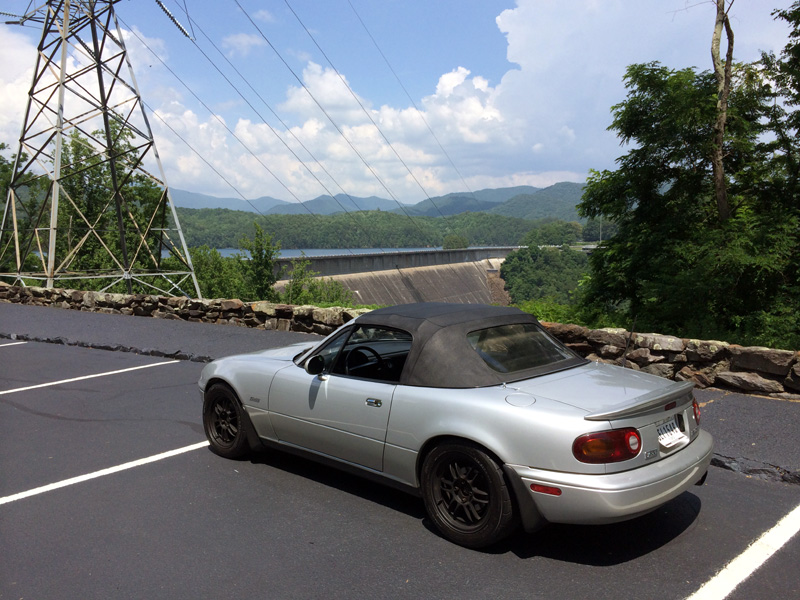 I picked up the car in Florida and drove through the Smoky Mountains and the Tail of the Dragon en route home. Here's the car at Fontana Dam.