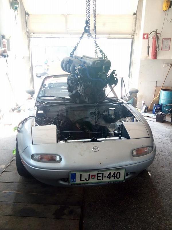 Well i have finally decided to register here, been reading only for few years now. I've bought my first miata about 2 years ago, its a 1.6 90km silverstone. She totally rust free, changed some bits over time, mostly maintenance. Got her some koni yellows/eibach pro springs last year. But since the engine was wearing out ( heavy foot ) im now in a process of swapping for a vvt with ms3