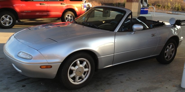 The car: Silver 1990. New top, new tires, lady driven (duh