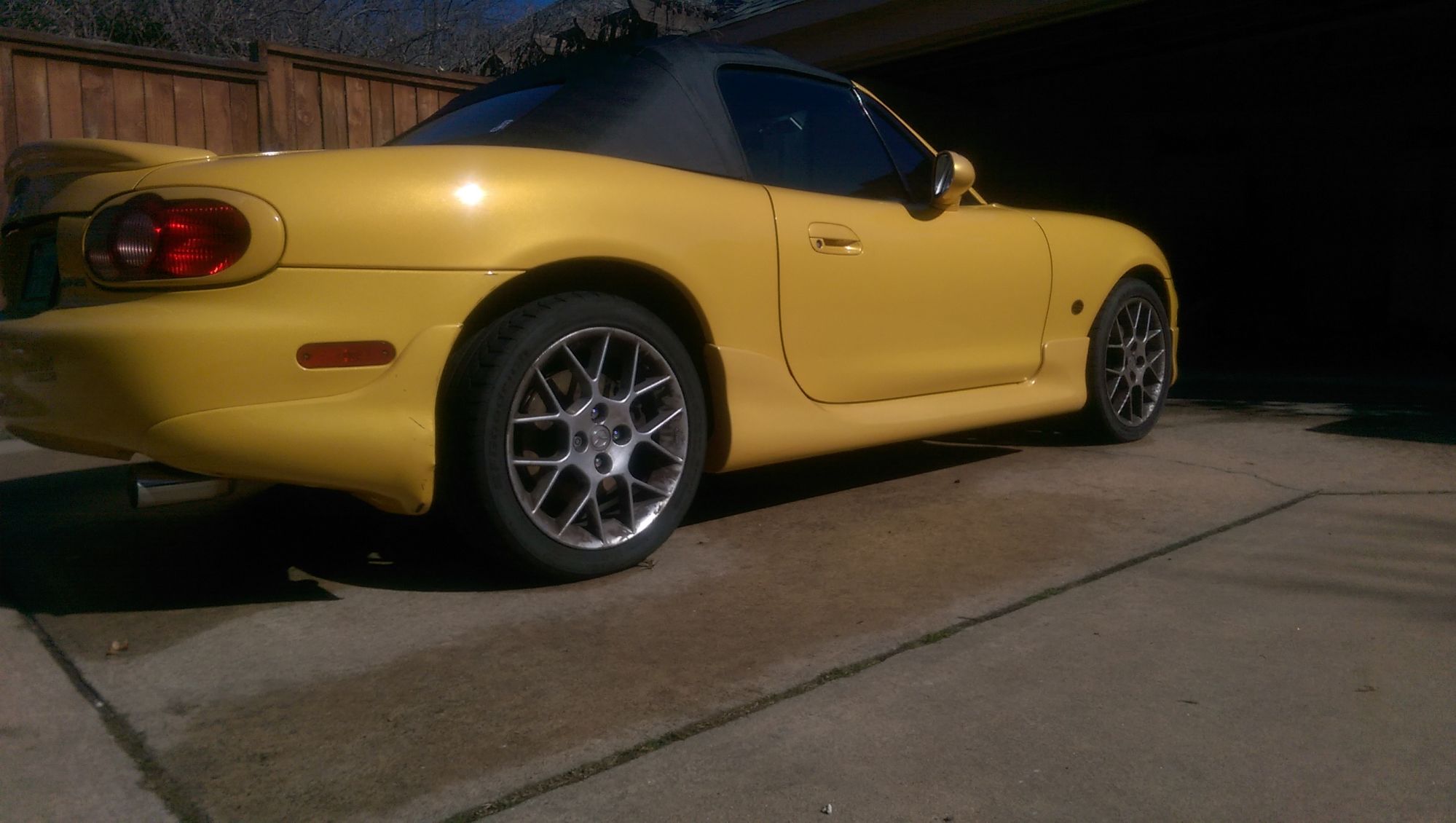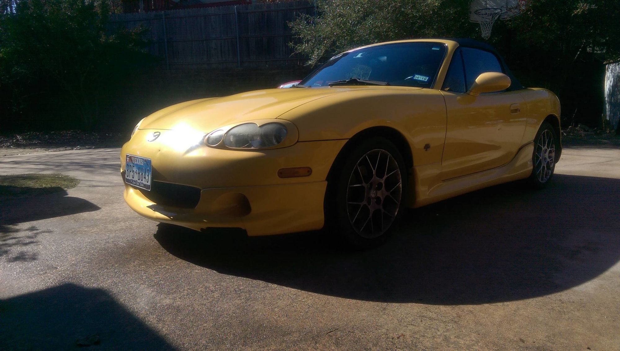 I drive a 2002 Blazing Yellow Mica NB. My parents bought this car around 2010 from a dude who beat the body to hell and back. My dad took it from 92k miles to 118k until it was my turn. I learned how to drive in this car. Currently it is pretty close to stock.