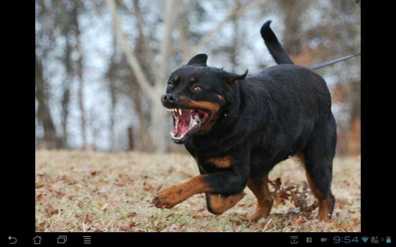 Both pictures were taken while training them Bite work. Funny right? I never lock the doors at my house, come on over Buck! I am a very good shot with any of my many weapons and I only have 11 Rottweilers.....