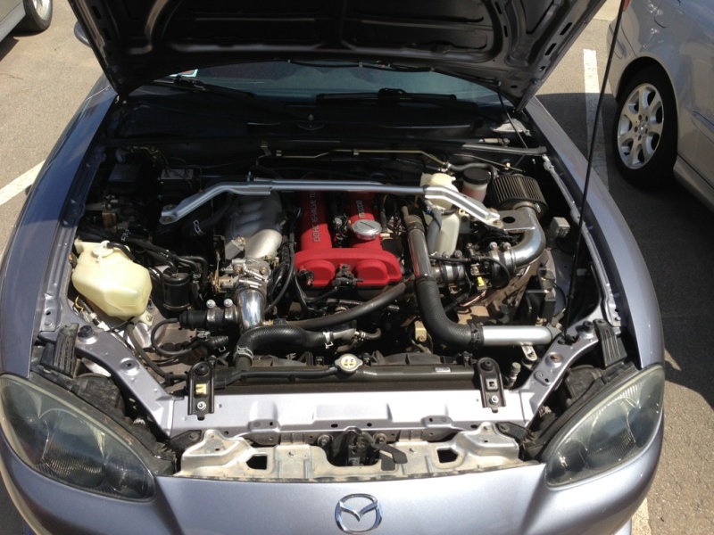 Hello everyone! my name is James I'm 38 and live in southwest kansas.First time on any forum. I am going to buy my new (to me anyway) 04 msm in the next few days. Am trying to decide between two cars both gray, one bone stock,and one that appears to have the little enchilada kit installed. both are at dealerships in wichita.(about three hours from me) price is $2000 lower on the modified car and it looks to have a boost gauge and controller. any thoughts on which way to go? just want a fun car to drive and love the look of the mx5 , trying to attach under hood pic of the modified car