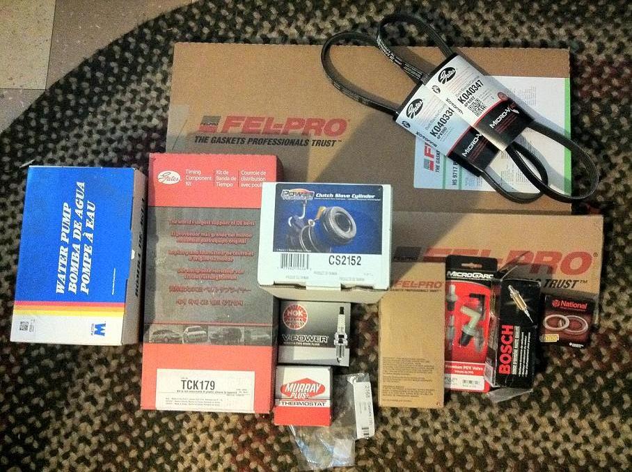 (Felpro Head Gasket Set, Rear Main Seal, Oil Pan Gasket, Gates Timing Kit & Belts, New Water Pump and Slave Cylinder, National Crank Seal, NGK Spark Plugs, 180* Thermostat, Bosch 02 Sensor, and PCV Valve, all for under $300 New)