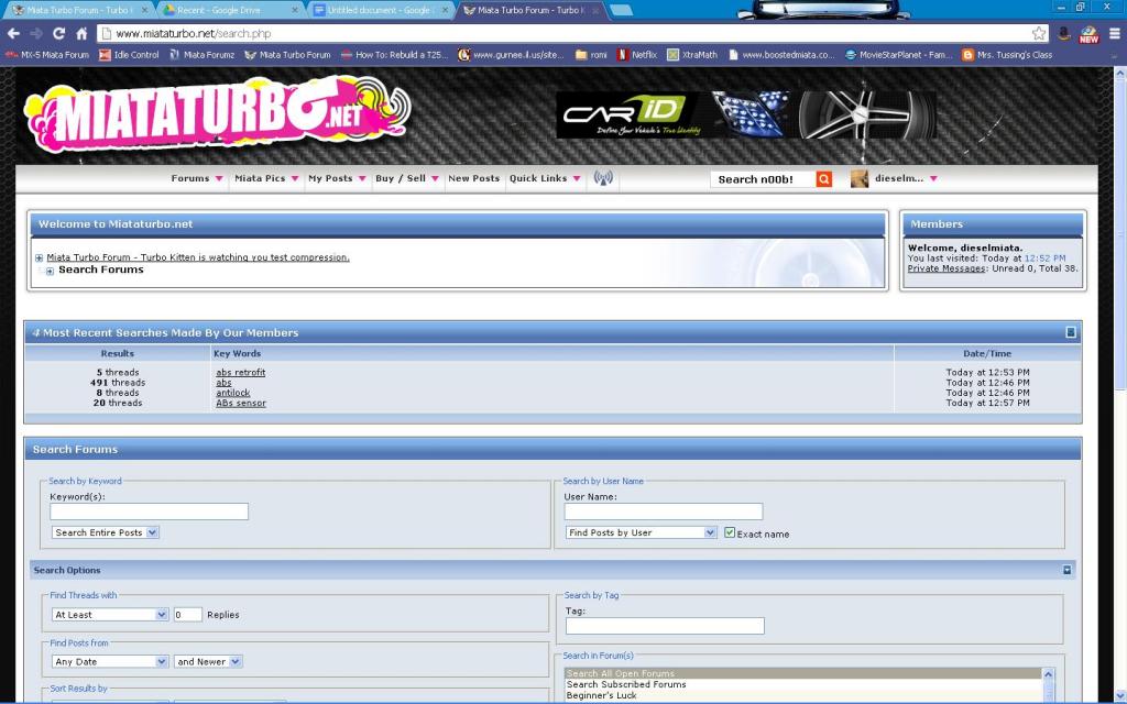 The forum search engine is more than capable of answering all your questions, but you have to understand how it works first. If you type in "ebay turbo" into the box, it is going to scan every thread for the words (ebay) and (turbo). You can imagine how many threads have the word turbo on a forum of this nature.