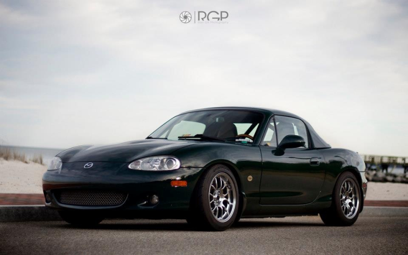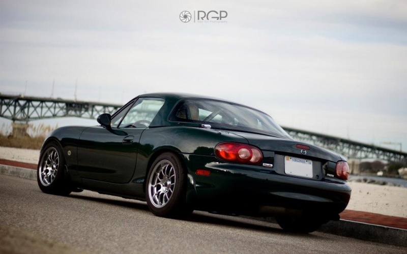 After having the car for an afternoon I ordered wheels/tires, coilovers, and a roll bar. I also bought a BRG hardtop off a local 01SE for sale (trashed other than the hardtop) and removed the soft top. It currently sits at that point while I decide if I want to swap the supercharger for a turbo setup or do a KL-swap. I've also started collecting a black interior to swap out the tan.