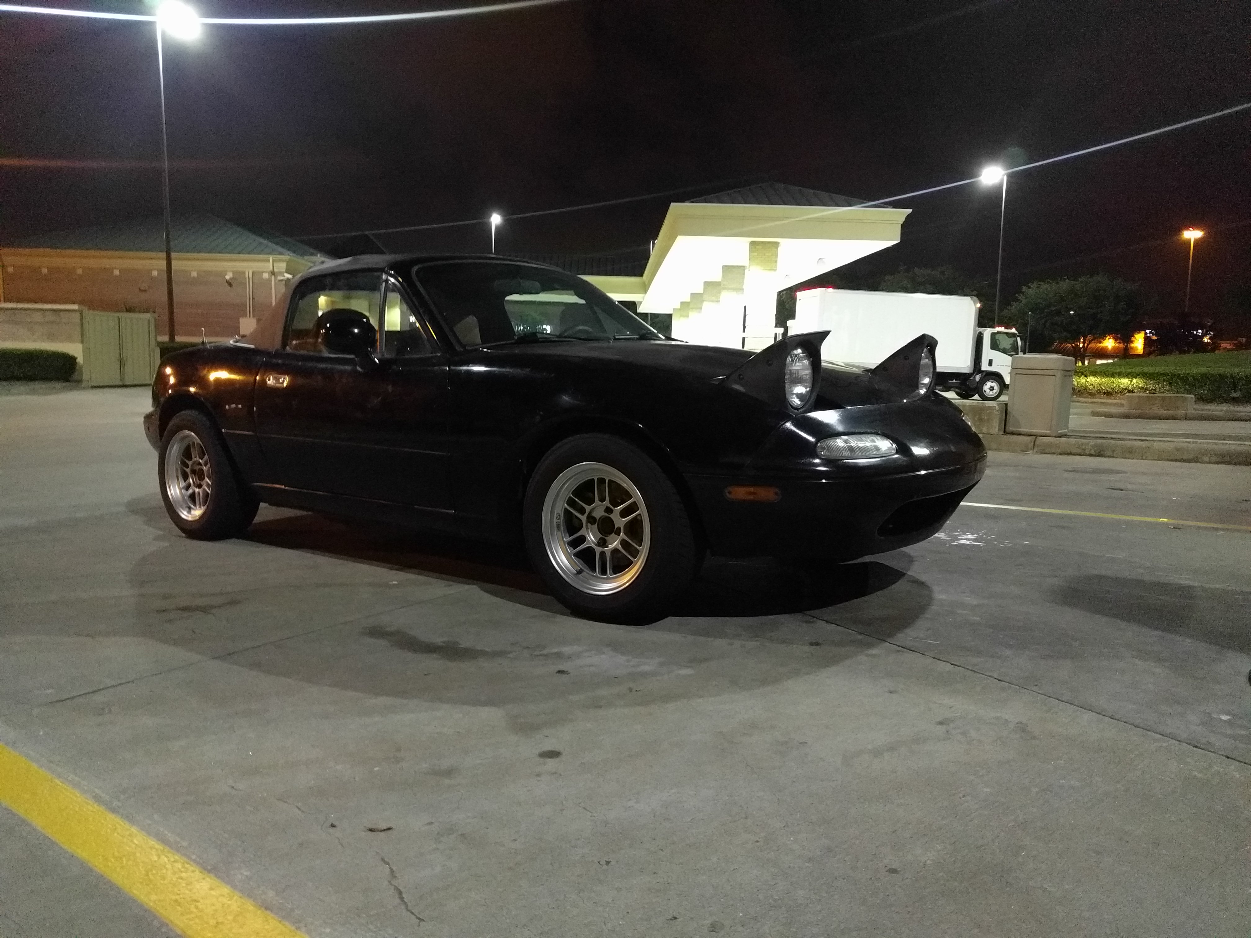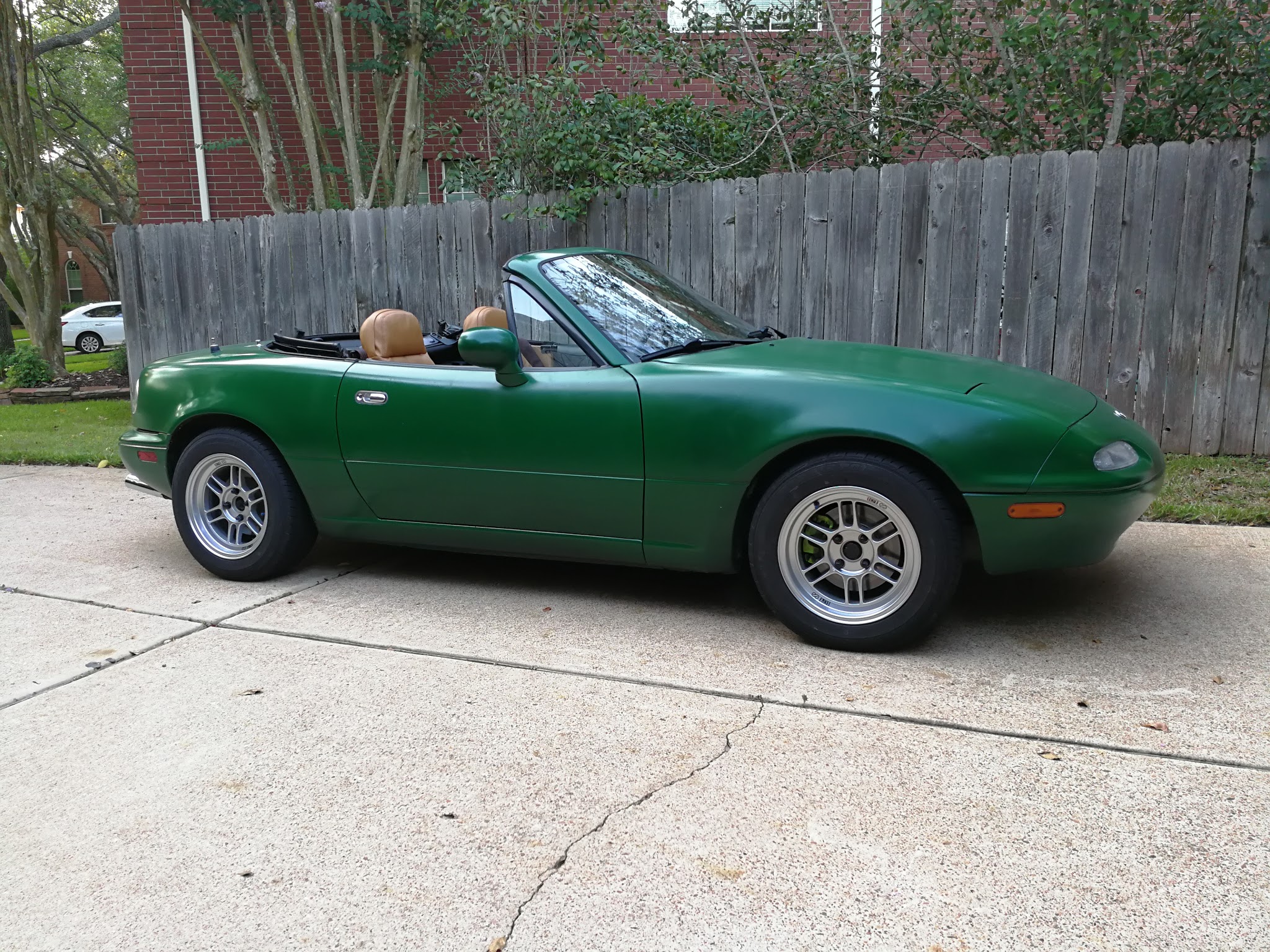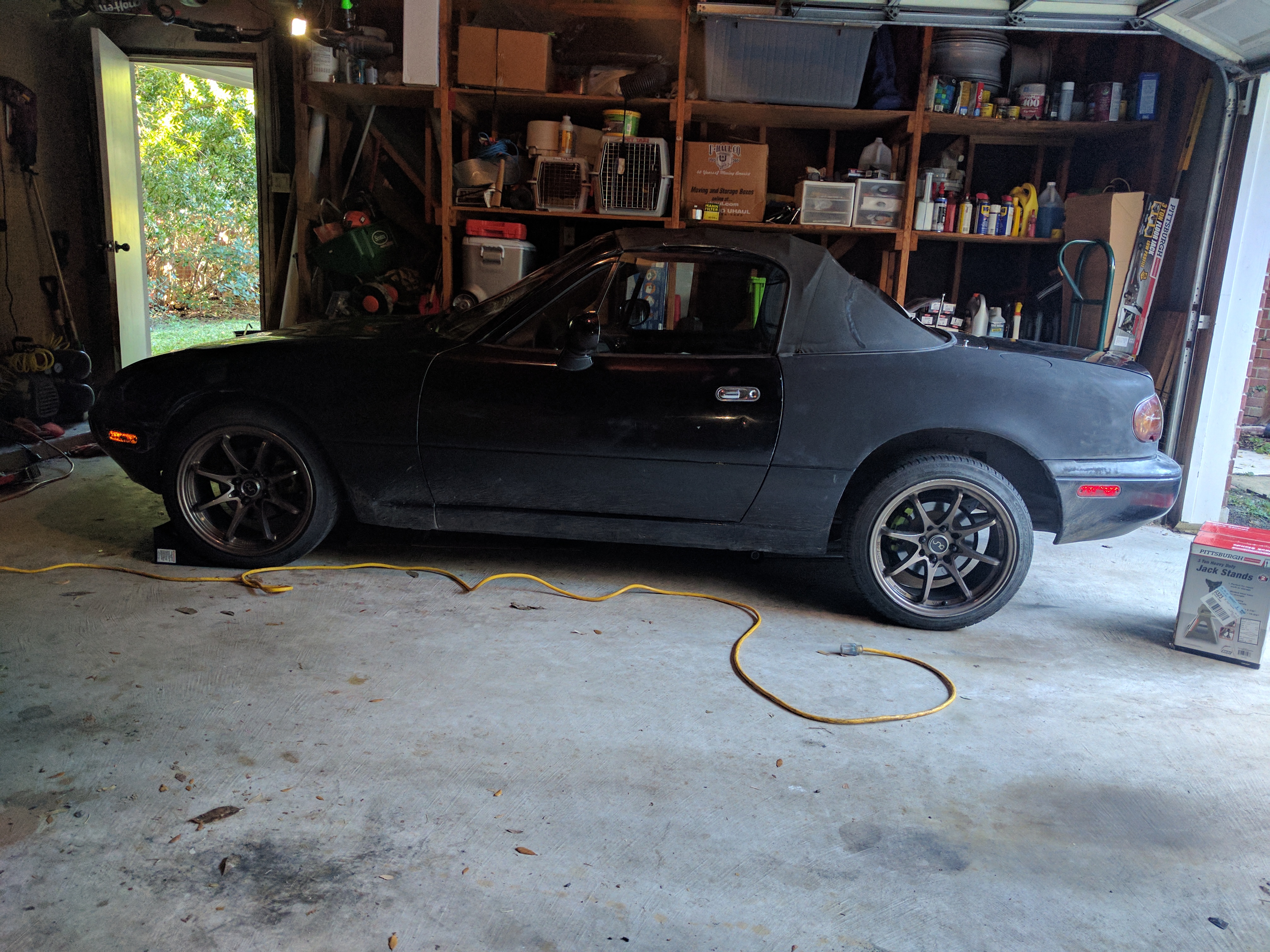 Howdy. I had been looking for a project car because modding my daily is something I'm too old for and somehow got obsessed with Miatas. Small, cheap, lots of aftermarket support, perfect! Last December I finally pulled the trigger on one, a mechanically good, reasonably stock 1994 NA8 that looked crappy in a three-day bender kind of way, not a meth head gas station robbing sort of way. It had some chinesium headers, a straight pipe, and some volk replicas, but nothing major had been done to it. Crappy paint, shot soft top, and a CAS o-ring leak, but I'd seen worse. Came with a set of OEM wheels and tires, turned out to be the light hollow spoke ones.