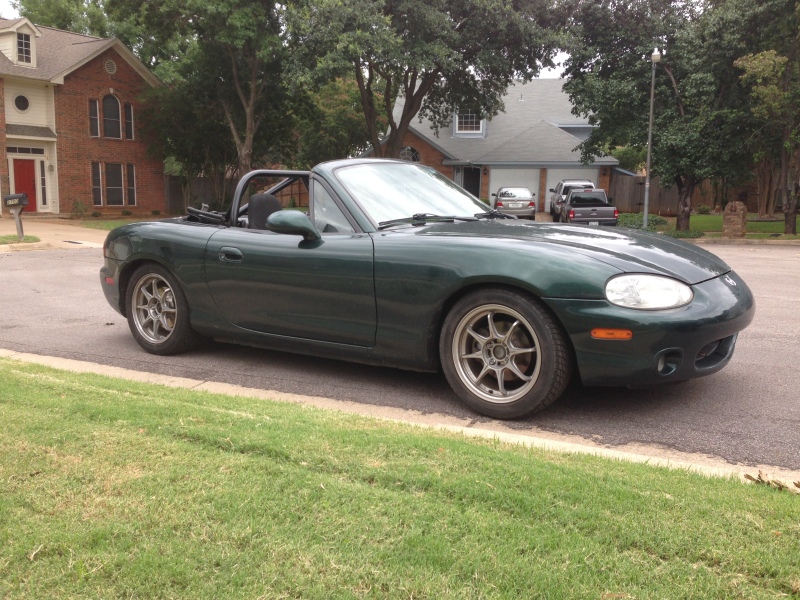 I've been lurking on this forum as a guest for the better part of a year, and in the Miata community in general since 2012. I first got into Miata's when I bought a 1.6l Spec Miata back in 2012. Fast forward to 2014 and I replaced my 1.6 Spec Car with a built by me '99 Spec Miata (the 1.6 might have been totaled... long story). I've also been dailying a '99 Miata for a little over a year. Over the past 6 months or so I have been slowly collecting parts for a turbo build. The car is currenty sitting on Megan EZstreet coils, and light weight 15X6.5 wheel, hoping for 15X7 in the future. So far I have: