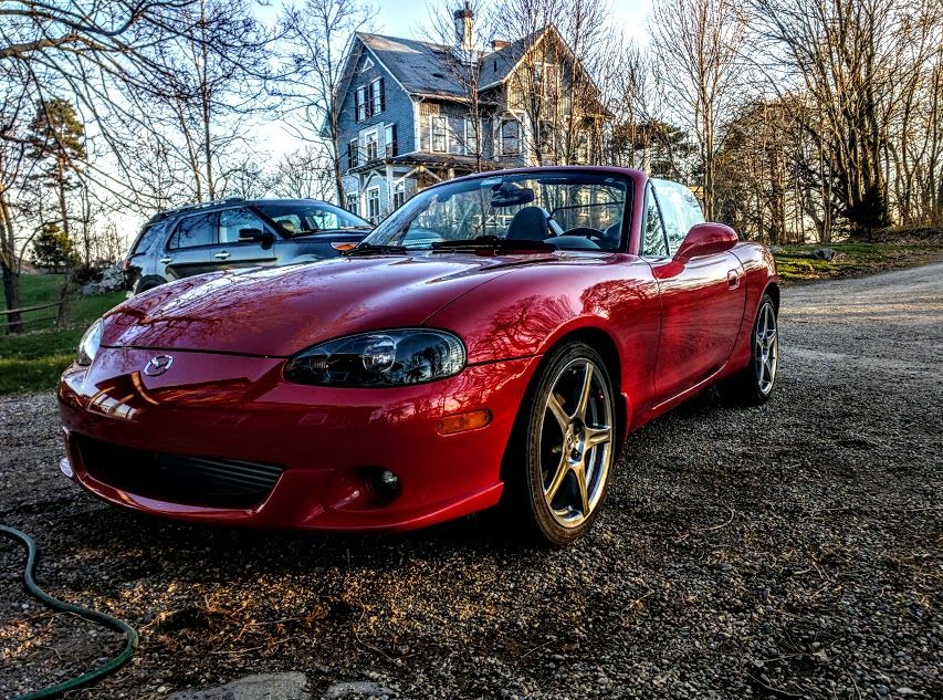 Six months ago I bought an '04 MSM as a reward for winning a big business deal. I've put about 3K on it, and just hit 60K. I'm on the north shore of Boston. I used to work in the car biz, sales then general sales manager at Charles River Saab, years before GM croaked them ('01-'06 or so). I like to think I was one of the good guys in the business, and I think (hope?) most of my customers would have agreed! I've been out of that for 9-10 years now. I had been driving a modified '97 Saab convertible since new, which died of a cracked oil pan last March at 187K. That car started down the slippery slope of performance enhancements with a cat-back exhaust and eventually had an ECU reflash, custom turbo, IC, downpipe, springs, poly bushings, and limited slip. It was replaced with a leased Ford Explorer for work as I need to tow sailboats (I'm now marketing & sales for a racing sailboat builder). The MSM is a nice anti-SUV, which I was desperately craving. My 16 y.o. daughter got her learner's permit in February and is learning to drive a manual gearbox in the Miata: