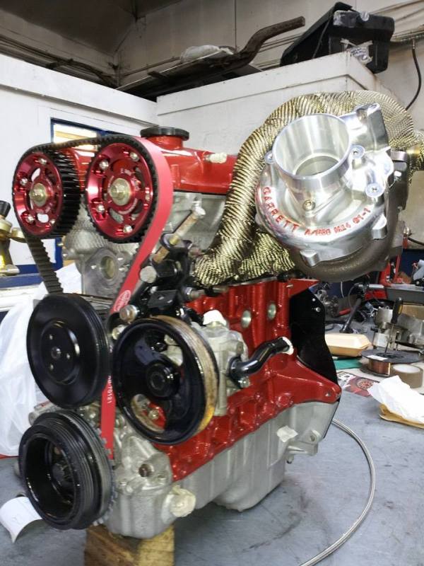 Okay, This is my current project in progress and it is obvious what I am creating. This is a 1.8 mk1 engine with a homemade manifold and with Garrett t28 ball bearing attached to it. I have also machined my cam cover to give me exposed cam gear. I will be creating a custom inlet manifold over the next few weeks. More posts to come. I hope you like the pictures and would like to hear what you have to say.
