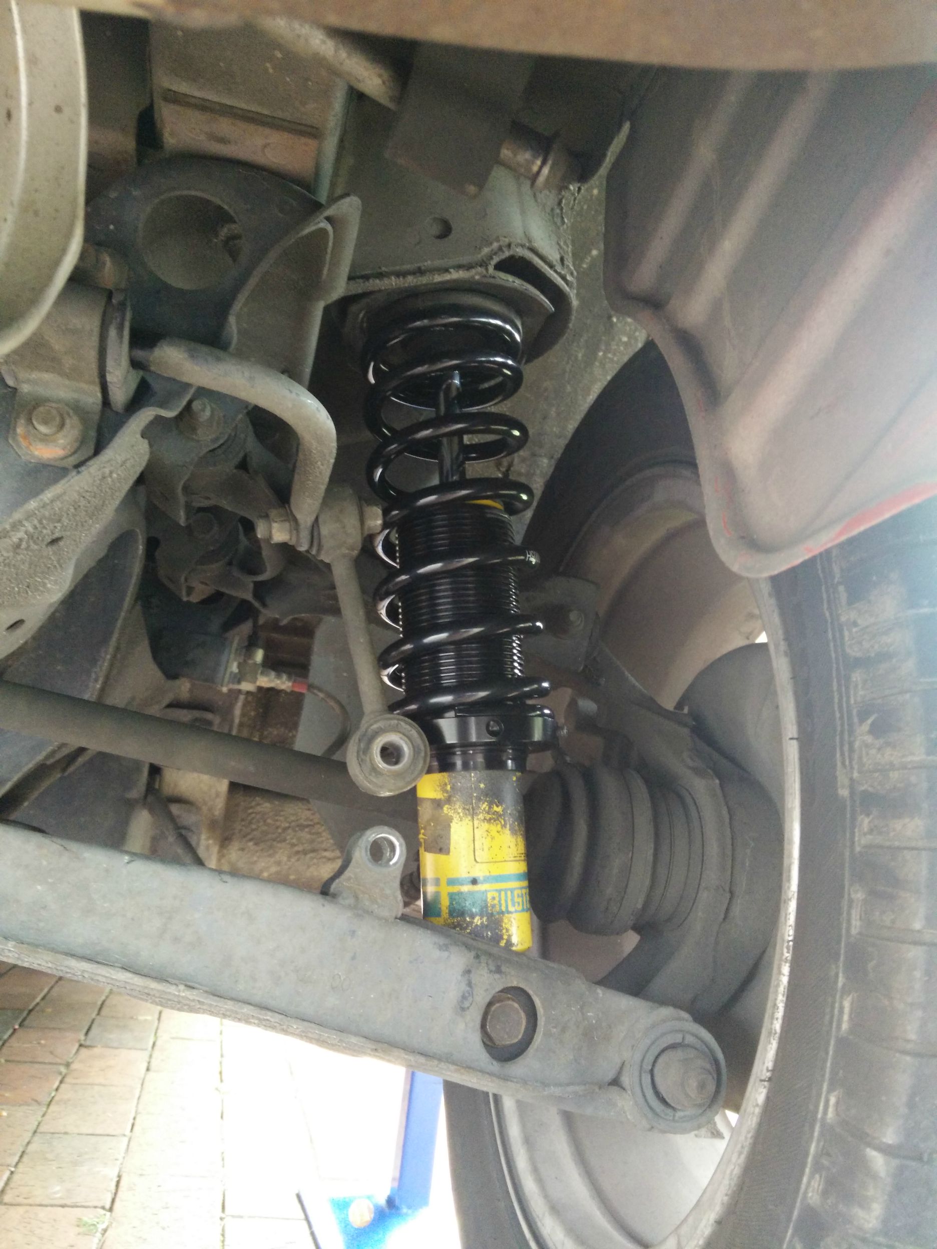 Got some MSM bilsteins, integra speedthane and 1.5" ISC top hats. I cut the rear bump stops down to about 40mm but they ended up being too short and compressing too much so on large bumps the upper arms would hit the subframe. So I ended up just chucking the full 76mm bump stop on and it seems fine now but they're probably too long now.