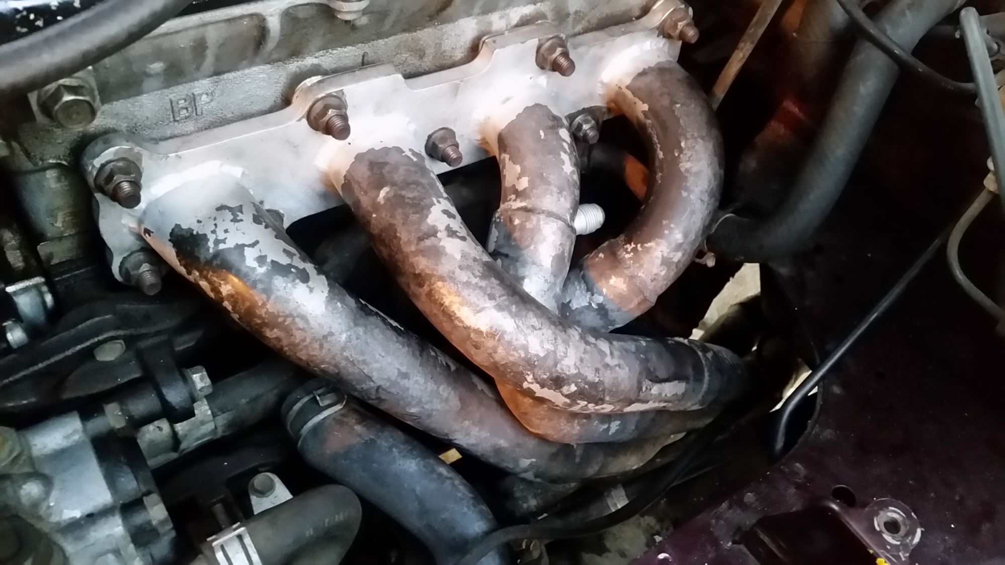 Got this Riceland header from 'Heyitsryan'. I'm not entirely sure why since I plan on the turbo thing soon, but why not? I was going to get it blasted and coated, but I'm way too lazy to do that if I don't plan on keeping it long term.