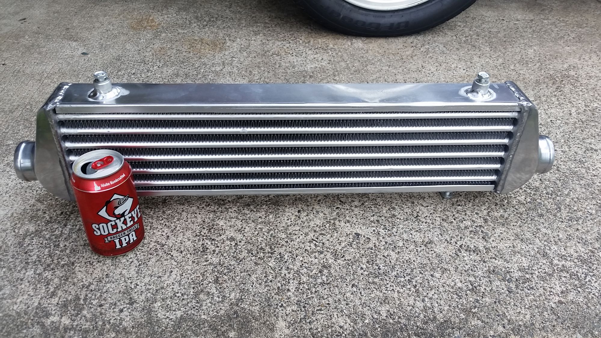 I got a chinacooler. Nice and small for minimal radiator blockage with 2" inlet/outlet for easier routing.