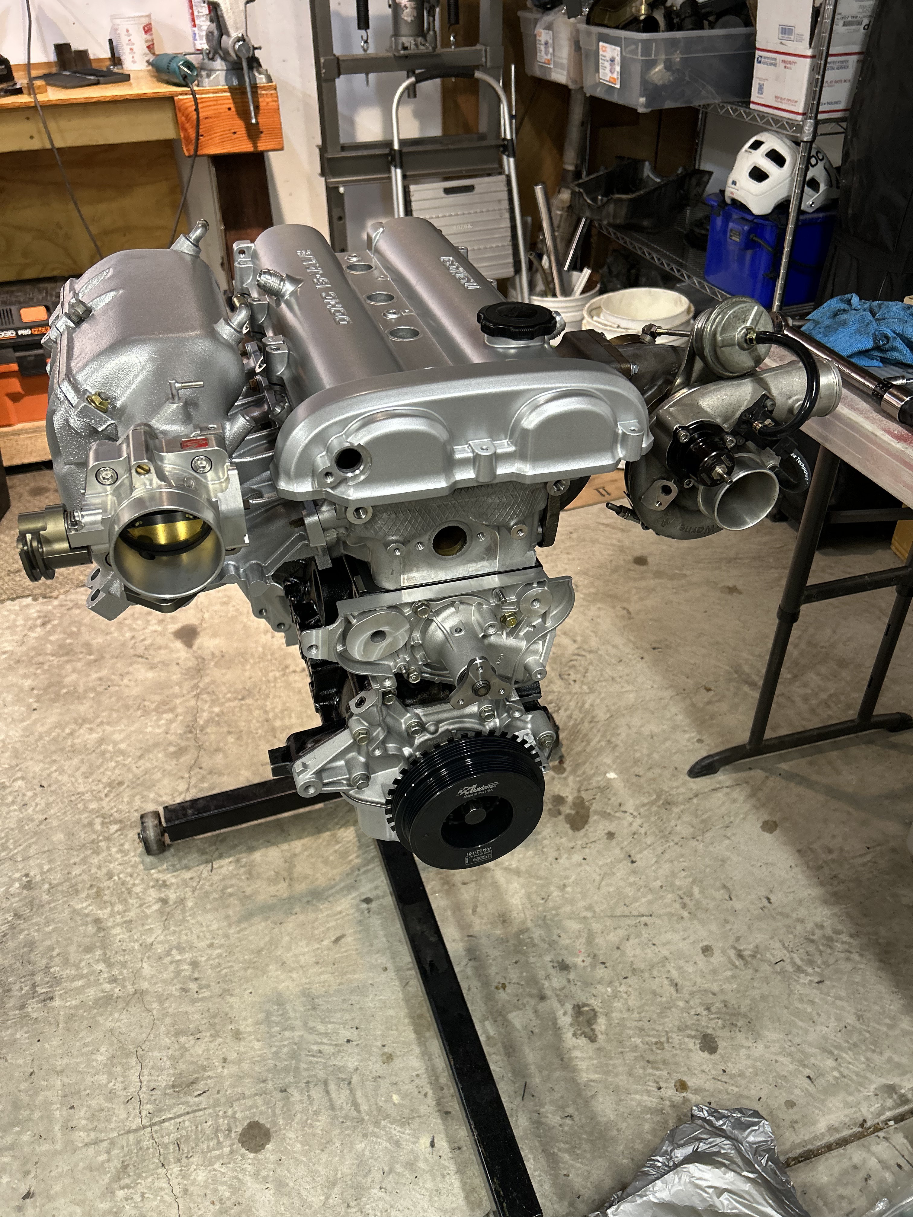 threw on the intake and exhaust mani’s and turbo for some visual progress. It was a long day! Cant wait to make some pssh pssh noises with this thing