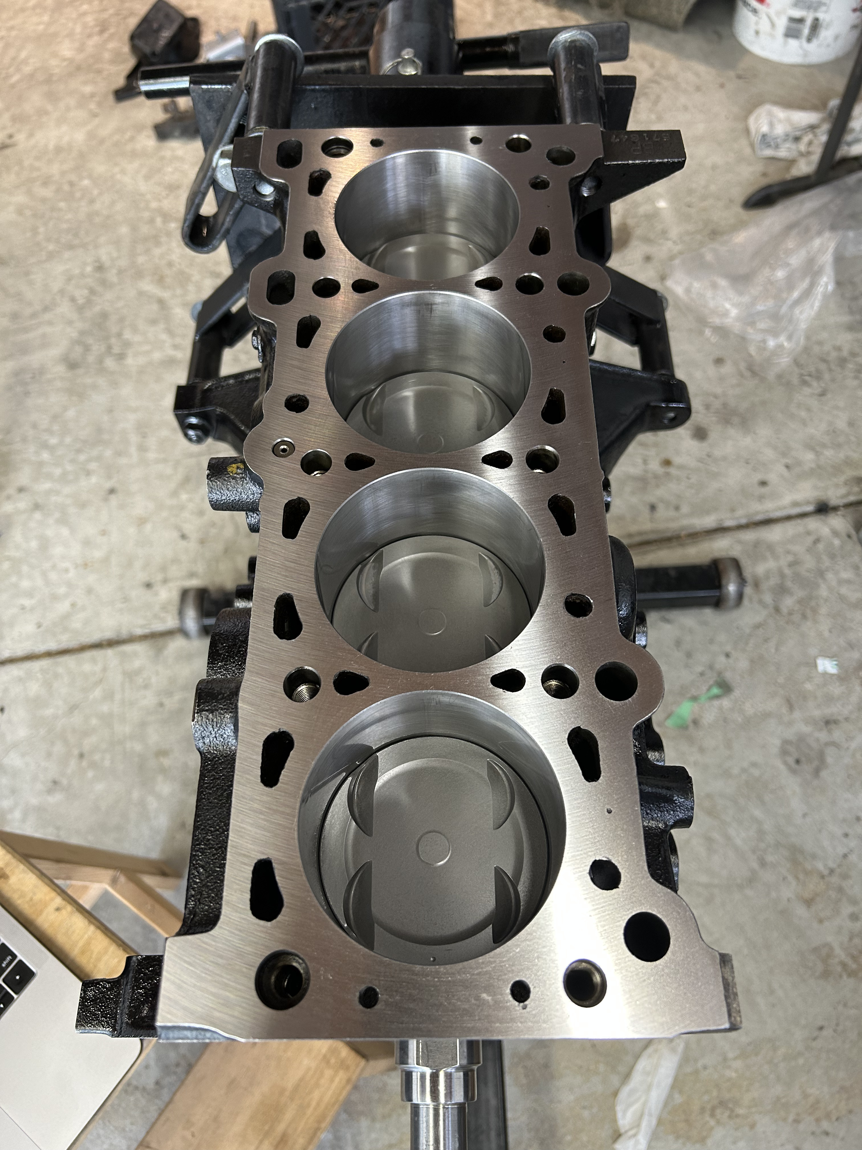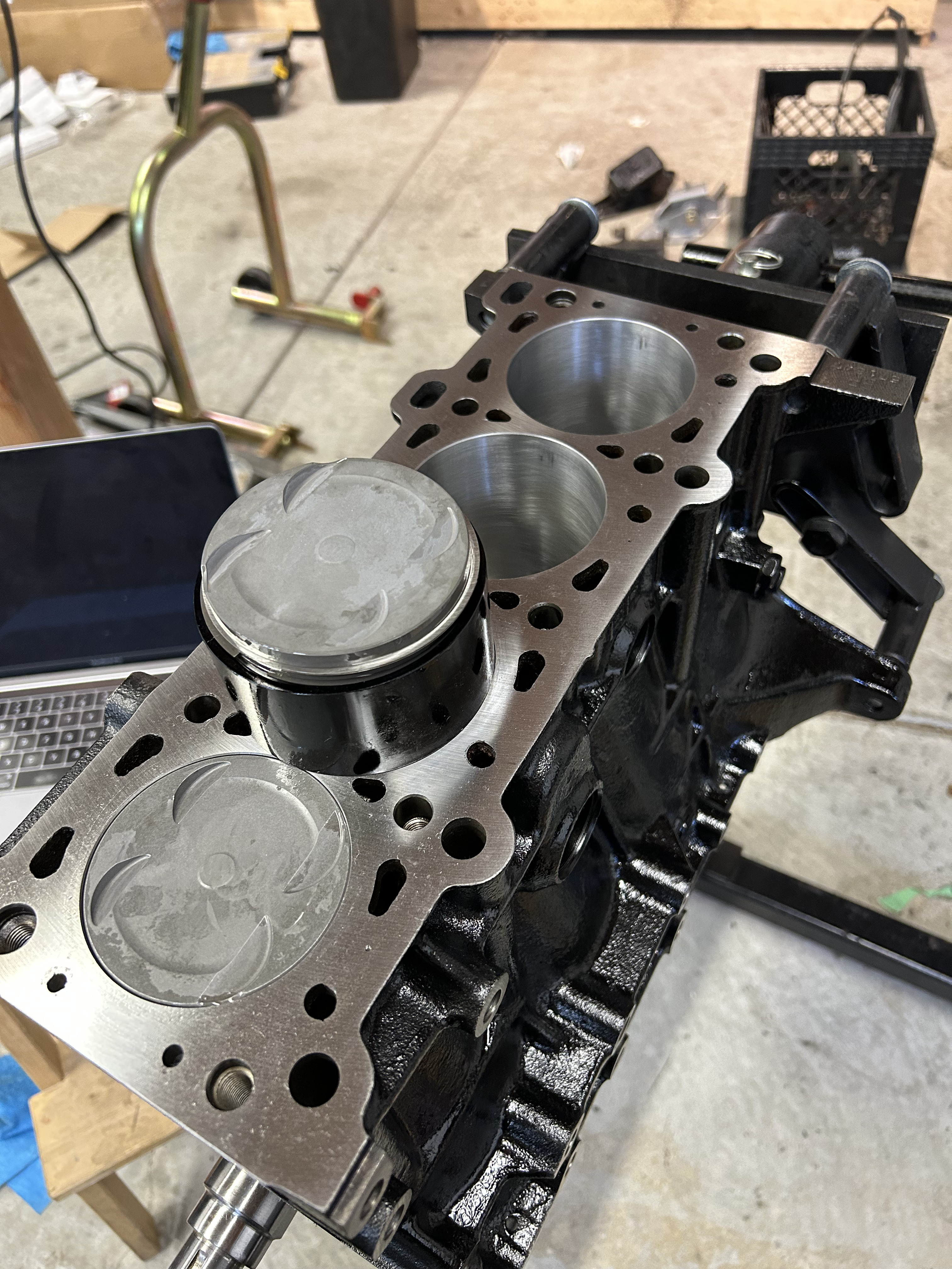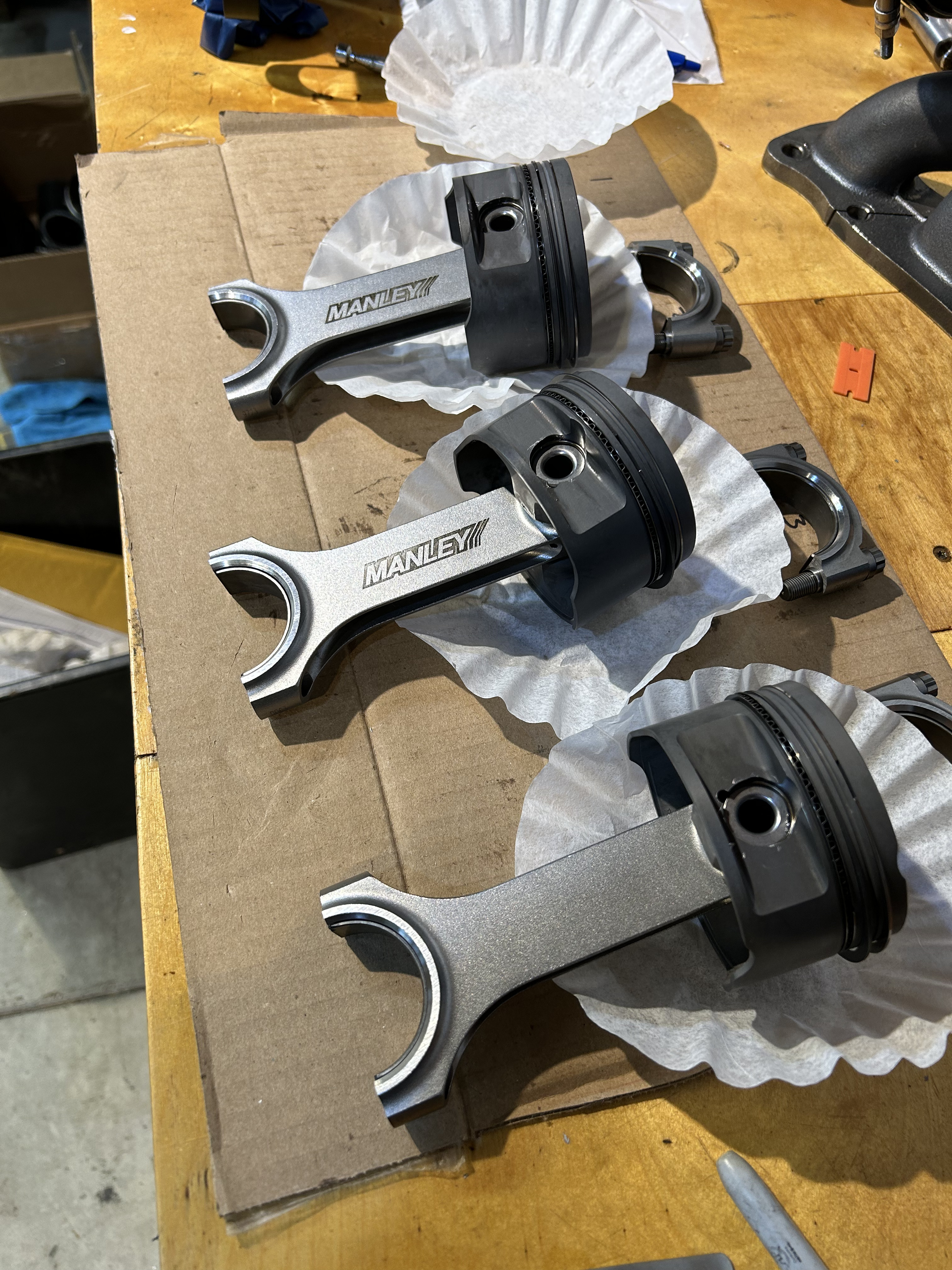 Rod assemblies staged. Had a moment, went to install the 4th piston and something seemed weird. They printed their logo on the “wrong” side relative to the other pistons. I wasn’t referencing the logo when assembling but still had a oh crud moment