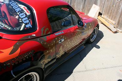 heres a pic of it when i first got it and a pic after i dewinged it , and slayed the dragon and pulled the rest of the stickers off, im going to put the side skirts and the small fender flares back on after i roll the fender and paint it semi gloss black
