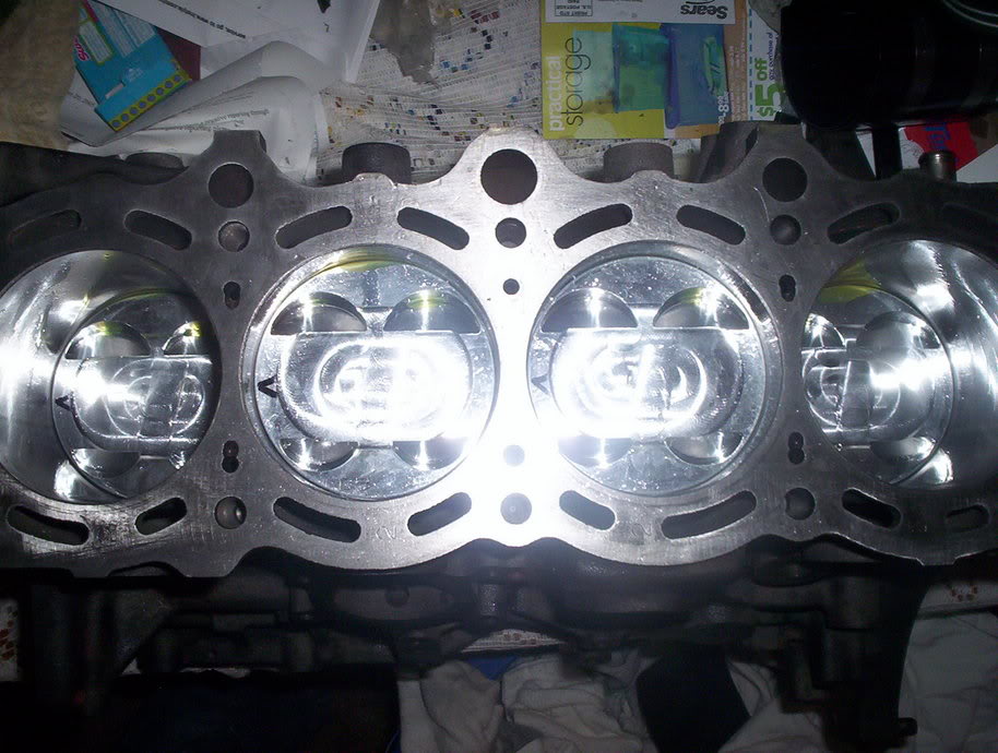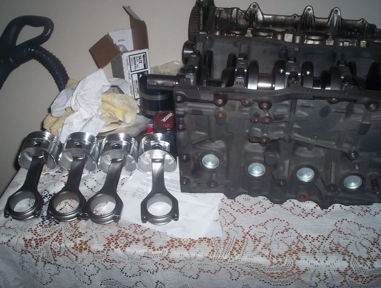 I started the rebuild in my living room so I could watch TV and build the motor while sitting on the couch. Here is the engine hot dipped with the JE pistons Eagle H beams waiting for their new home.