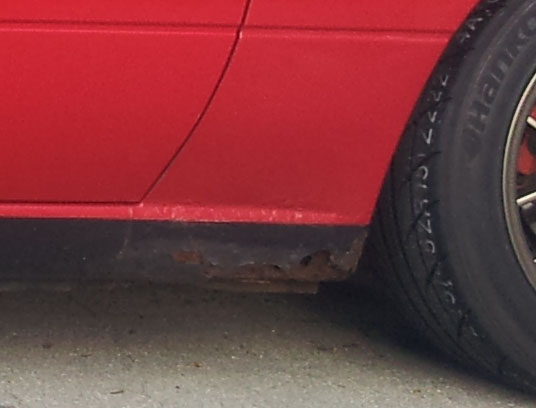 It's actually FAR worse than you can see in that picture, Both sides. When I jack up the car from the pinch weld, more pieces of rust fall out of those holes.