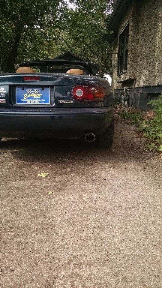 Single owner Miata, the dude really loved his car. The car is mostly stock with Aftermarket "American Racing" wheels and a "Racing beat" exhaust kit that starts about half ways beneath the car. It sounds nice, but I'm not sure it affects performance at all......