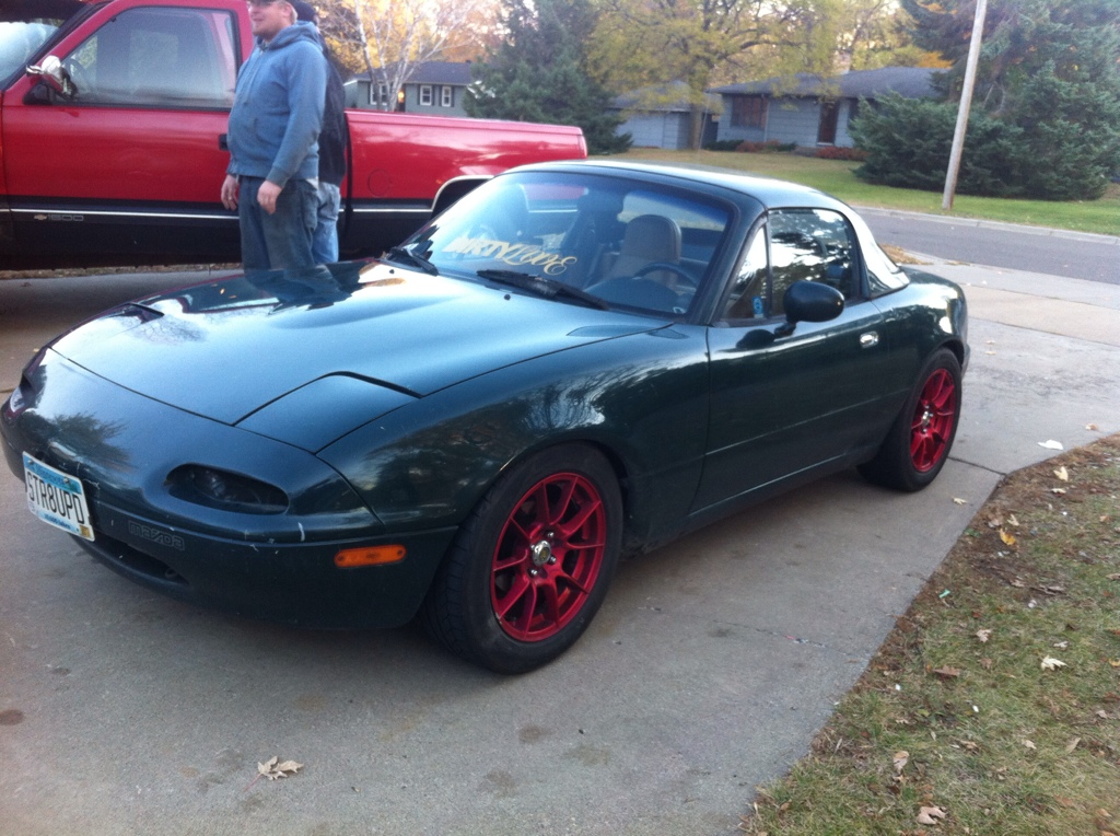 sup i got a 1991 miata BRG, its my first miata, so far its fun to drive and it will be more fun when she is boosted
