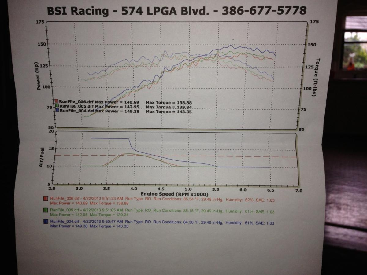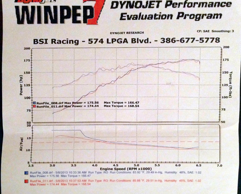 Then I went over to BSI Racing and proceeded to get some baseline numbers. the car seems to have some serious heatsoak issues. Hopefully a bigger intercooler will help with this down the road.