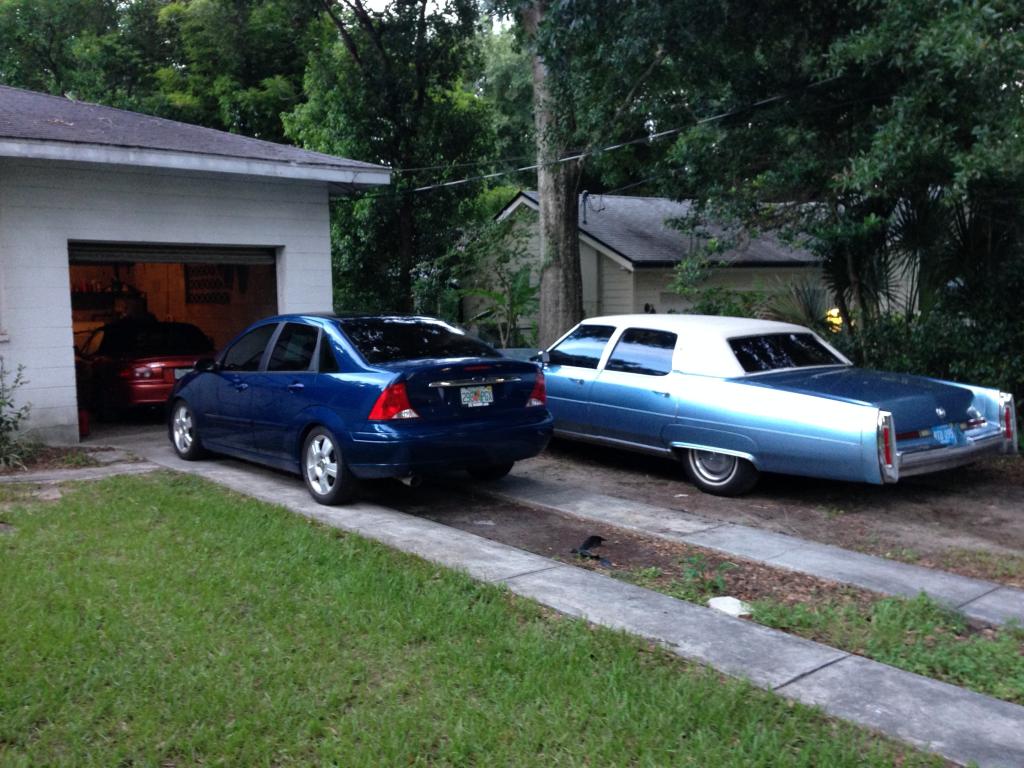 A current pic of the house rides. That is my roommates 55k original mile 1976 Cadillac Fleetwood Brougham D'Elegance, complete with 8.2L 500ci v8. Mmmm, 13mpg on the highway if you're lucky.