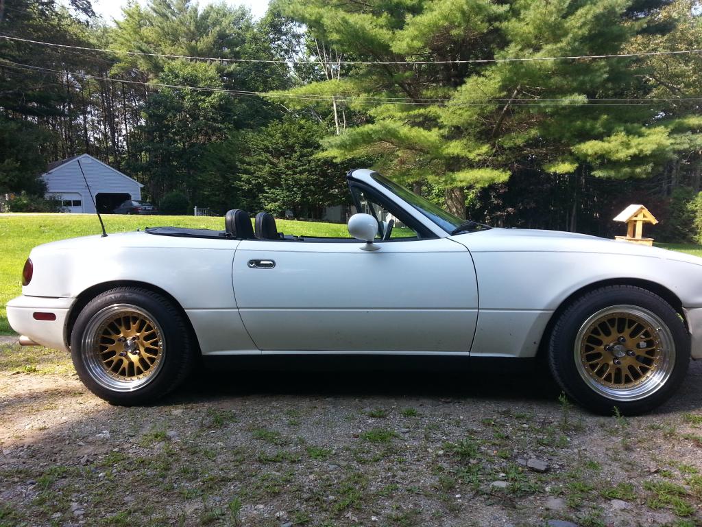 Hello everyone. My name is Greg I live in maine. Recently purchased a 1990 na. It has high miles but minimal rust ( rare for a New England car). So far I have installed 15x9 wheels and have new tein street flex coilovers and static9 frame rail reinforcements to install. In all honesty I was geared towards the slammed CR style in the beginning but have since rethought that decision. Will sit low but not slammed, and eventually will be going wide body and lsx based v8.