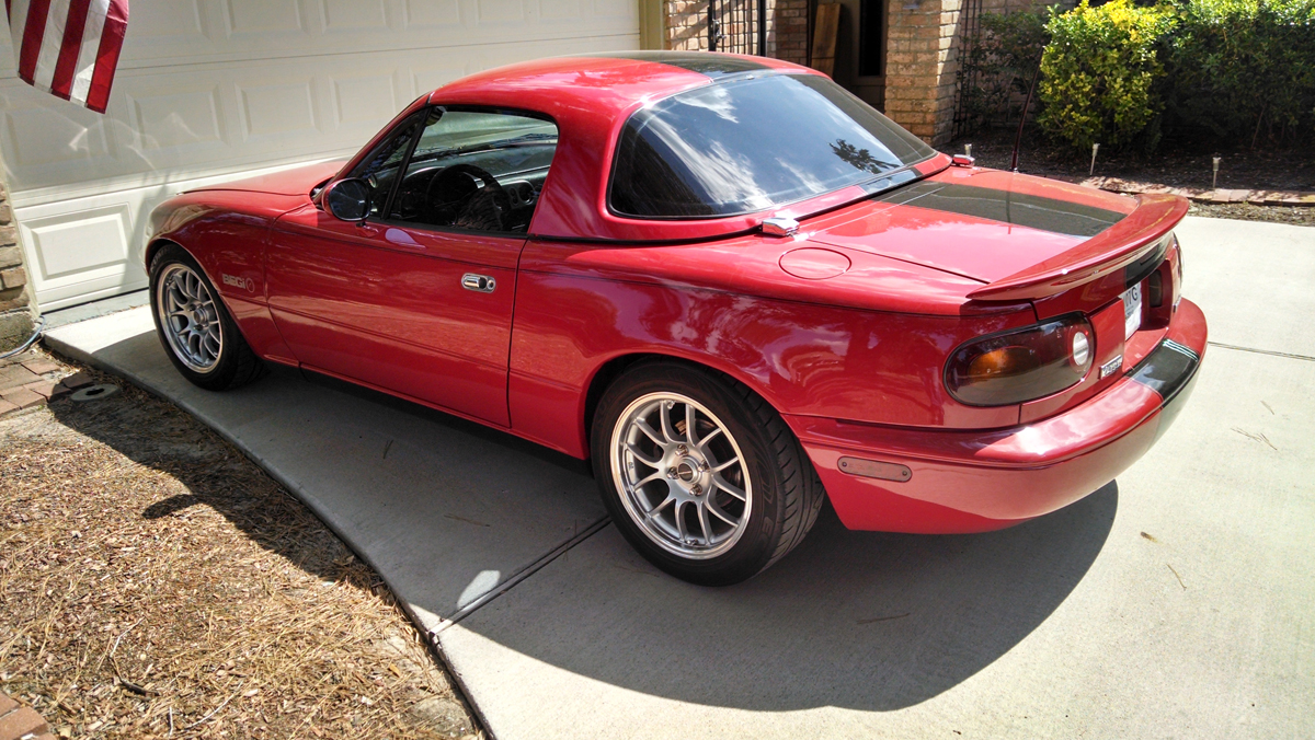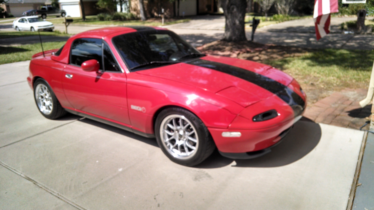 Wanted to introduce myself and my '90 NA. I got her last month needing a DE track car (I instruct in Texas) and found this car which was built very well. BEGI turbo kit, all the proper mods and fixes, suspension, 94 torsen and axles, chassis stiffening, roll bar, Corbeau racing seats. Added new 5 point harnesses, tires, fluids and big brakes and have had it out on the track. Car is street legal, still has A/C and a blast on the street too! I am happy!
