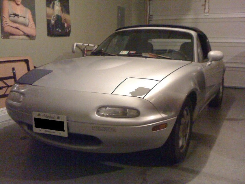 I bought my car in February. It was "backed into" in the PS front corner but it runs well and there's no rust so... Looked like this: