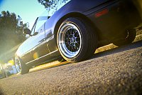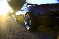 Hey my name is aaron. This is my first Miata and im loving it. It was a neglected 94 sitting at a friends house so i picked it put a used engine and trans and lots of new parts such as belts and hoses clutch machined the flywheel etc. My plans for the car is simple like most, put together a reliable turbo miata. I've been looking into a 99 head and keeping the 1.8 short block for lower compression and tell me to stop if im going retarded route so i can research it. Looking for 250whp or anything 2xxwhp. So thats why i came here to see what others have done and impart any know how or knowledge i know. So far the car has cheap a 1.5 drop from tein springs and im rolling on Drags Dr44 15x8.25 +25 with 195/50 S-Drives and painted some ricer lights red for the car at the body shop i work at. Hopefully in the near future all be painting my miata jet black with a two tone hard top, white on top and black on the sides. i hope you like the photos of my trashed miata lol