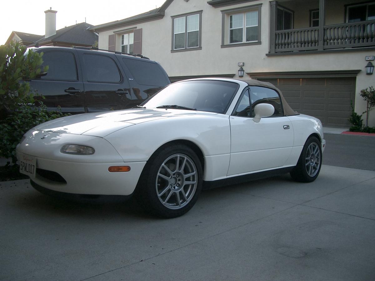 The wheels are Kazera KZ-M from tire rack. 15x7 30mm offset. Shod with Bridgestone RE-01R 195/50-15. The wheels are a little heavy (13.2 lb. each), but they're supposed to be durable as they were designed for spec miatas.