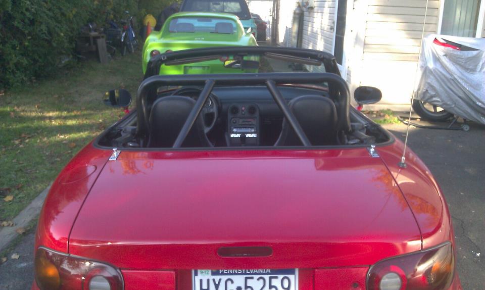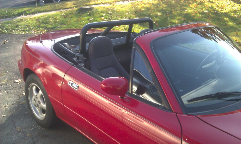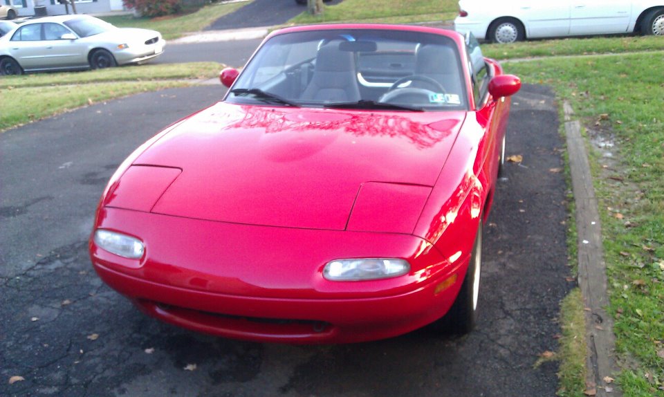 i own a 91 miata red 5 spd 175xxx miles i picked it up for 1200 from a guy. fell in love with it ever since i made my first turn. its pretty much stock it had a gay style bar so i took it out and put in one that might actually work. so far i plan on doing a turbo kit some new suspension work and possibly getting a hard top.