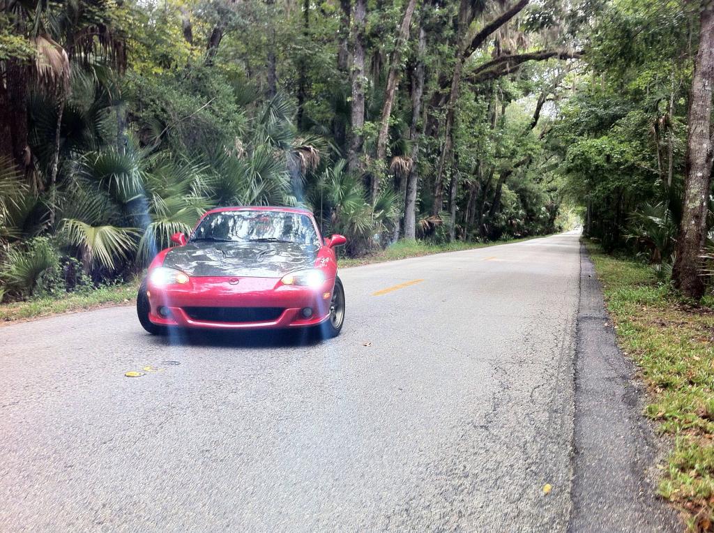 I want to introduce myself to the Turbo community. My name is Robert. I'm a full time college student looking to get my degree in Civil Engineering. I really didn't really have any interest in the Miata until I found my way into a Spec Miata in 2007. Since then, I've been hooked with the Miata and the community around it. My first DD was a White 93 and my second Miata was a 97 m-Edition. My third and current is a 2004 Mazdaspeed Miata Velocity Red. The first mod I've done was a MAF relocation kit which I'm having problems with. My goal is a daily driver weekend warrior. I want it to get me from point a to point b and go have fun on the weekends, autocross events and other driving events. Once I have the car paid off, I want to build a motor and upgrade the turbo so something more powerful. I think a goal of 300-400 whp isn't a bad number to shoot. for. As for me, I grew up around racing and I've been racing since I was 11. I started off racing Quarter Midgets in 2003. I ended up the 2005 Florida State champion in both of my divisions. I also won many other events and a 2 time Tangerine winner for 2004 and 2006. I was the first driver to grand slam the event, meaning qualify number one, set track recond, and win the event. 49 years of racing at that event and no one ever done what I did. I also grand slammed my third Tangerine in 2006 for my retirement year. Since them I moved from Quarter Midgets to Legends and then to Spec Miata. Due to rough times, the Spec Miata has gone up for sale and I looking at alternative to racing, including Autocross events. My MSM only has the MAF relocation kit on it along with Boss Frog Double Hoop roll bar. I also change the hood to a Chaser Aero hood I replaced the stock rims with Konig Flatout with 205/50-15 Nitto NeoGens. You can see my car in this picture next to Ozbrock's LO MSM.