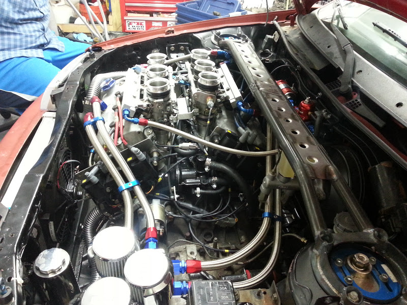 Mostly stock KL. ZE bottom end, slightly skimmed heads, CZT 218 race cams, Interprep valve springs, oval port Millenia heads. Custom Gixxer 1000 ITB setup with Kinsler linkage and Factory Pro velocity stacks. (ITB setup previously seen on "The KLiata," which was most recently owned by CodingParadox on here.)