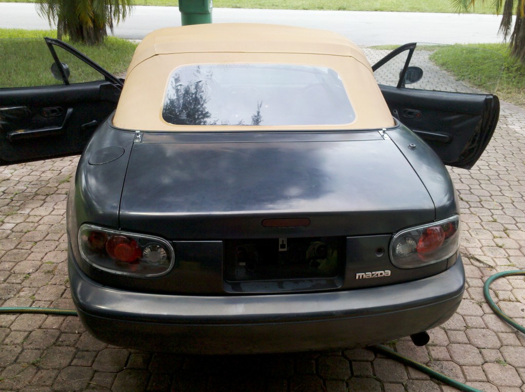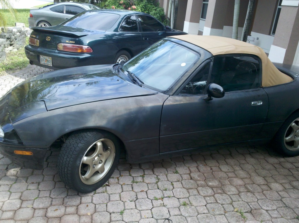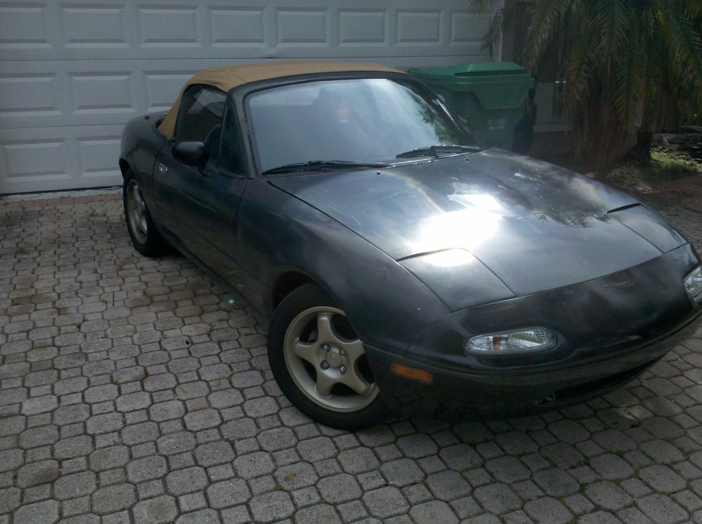 sup guys. just bought a miata. looks like crap, drives decent. here are some shitty pics. no pics of interior, but no cracks on dash or cluster cover.. just needs new doorpanels. and weatherstripping