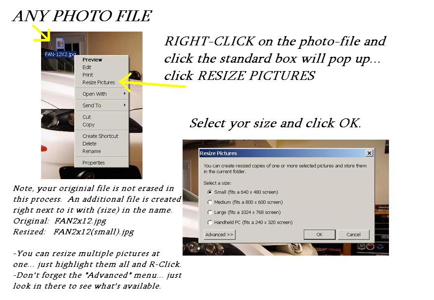 If you're going to upload photos to the server, then dowload the Microsoft Image Resizer on the righthand side of this page: