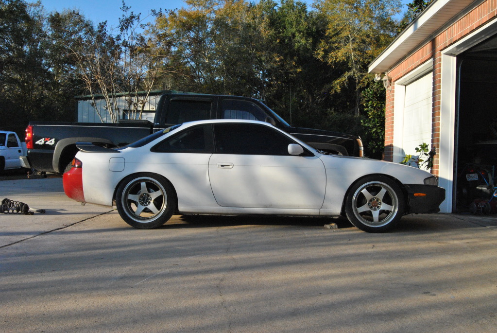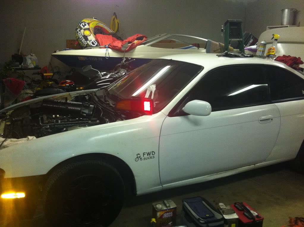 sold it, picked up a S14, dropped in a S13 SR blacktop, typical crap Cosworth HG, Freddy Manifold, XXrs, mismatched paint, ebay FMIC, Walbro pump, impracticaly stiff coilovers that were way too low. very fun car to beat on. ran 8.7 with 195 tires and an open dif spinning through second.