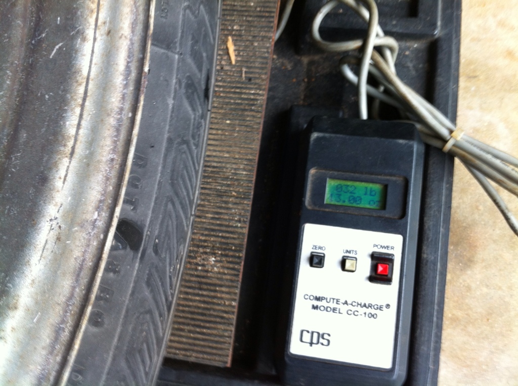 the new wheel and tire set up only weighs a pound more on each corner than the stock steelies with 185s. hopefully i can loose a few more lbs when i go with a smaller tire. the wheels weigh 13 lbs each.